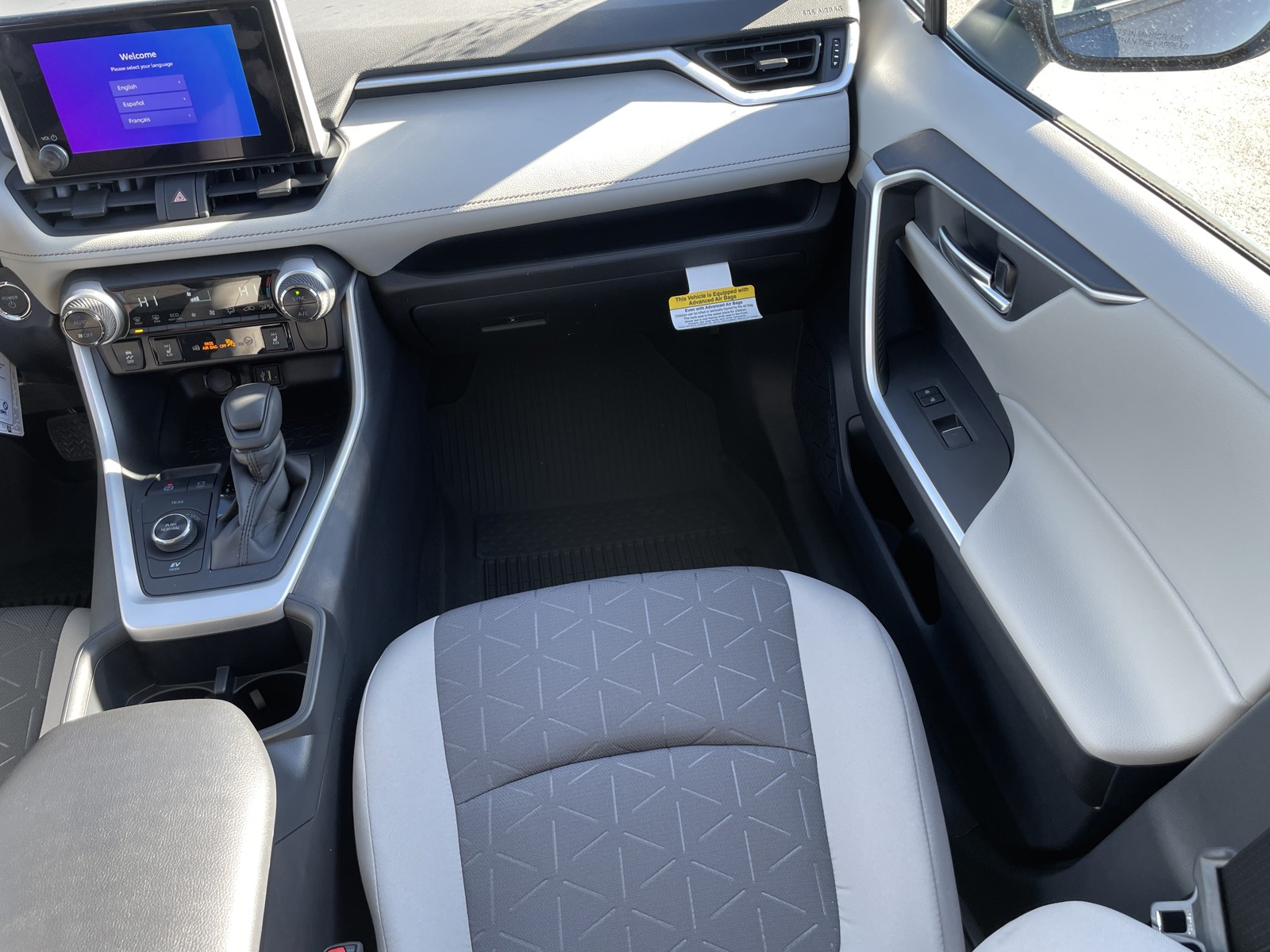 - Black carpet flooring with driver-side footrest