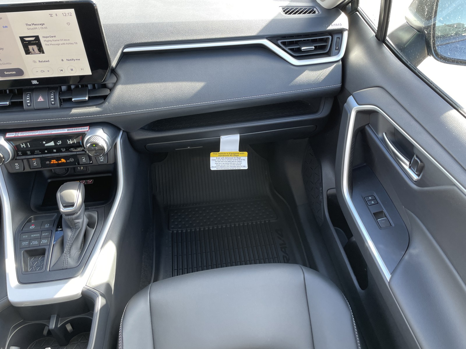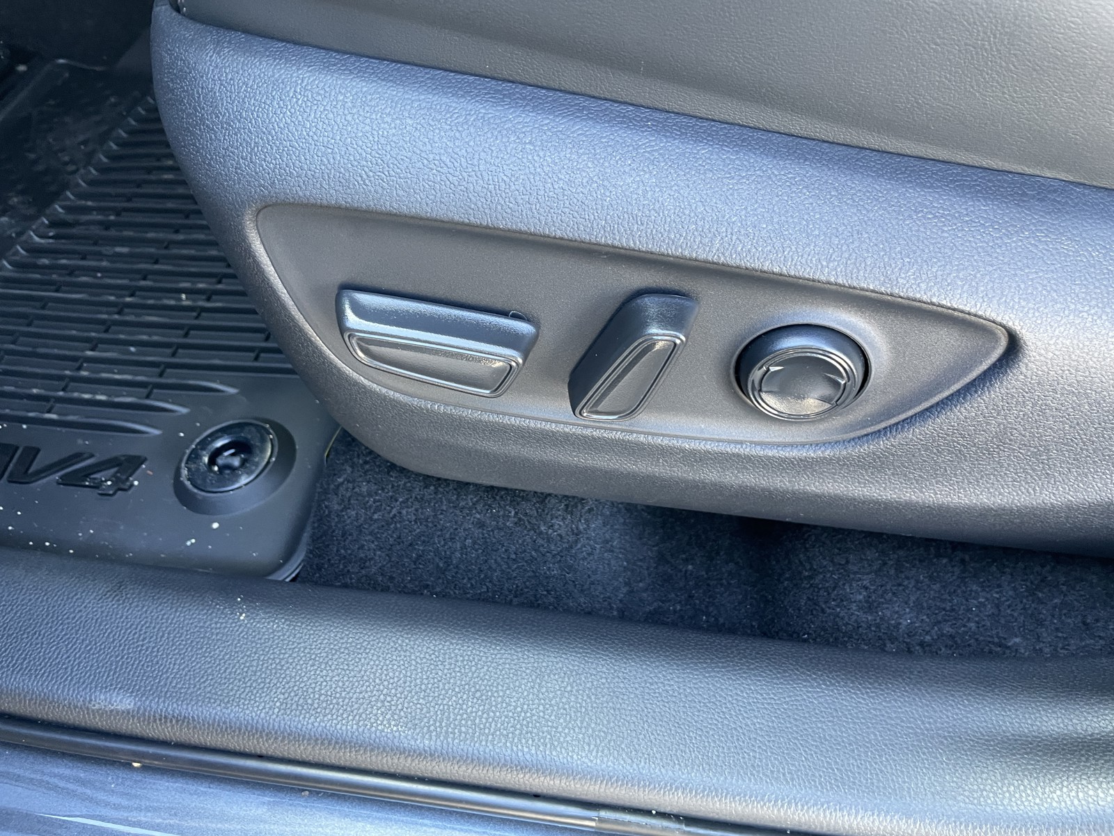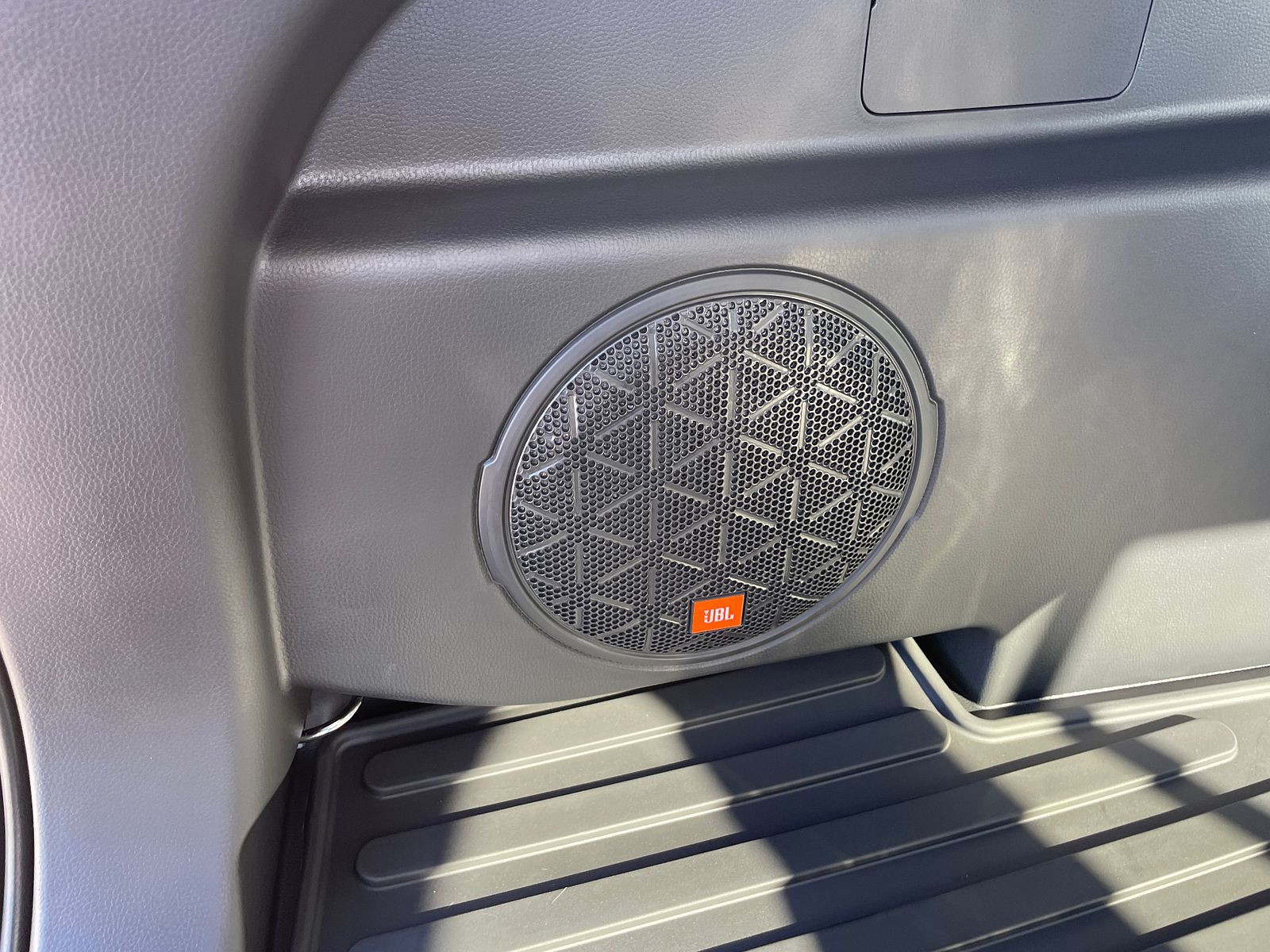 - Black carpet flooring with driver-side footrest