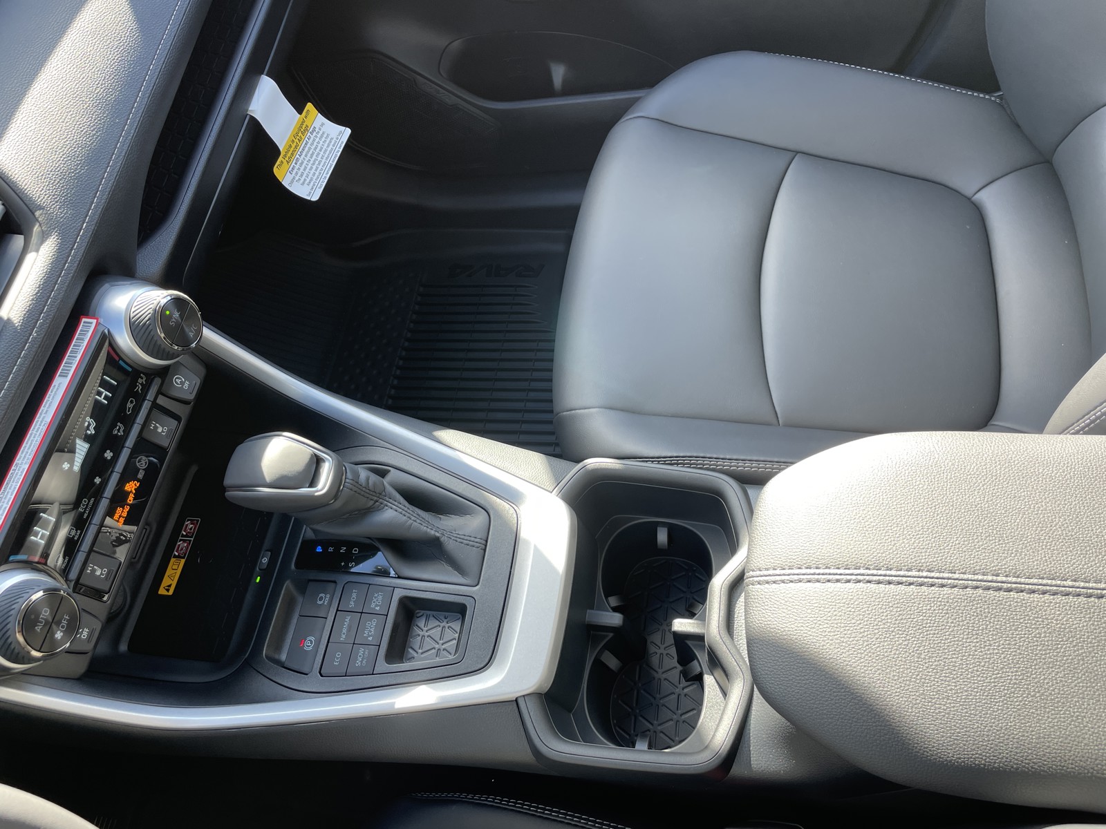 - Center console with covered storage compartment, two cup holders, drive mode, Multi-Terrain Select (MTS), Electric Parking Brake (EPB) and automatic Brake Hold controls, and front storage tray