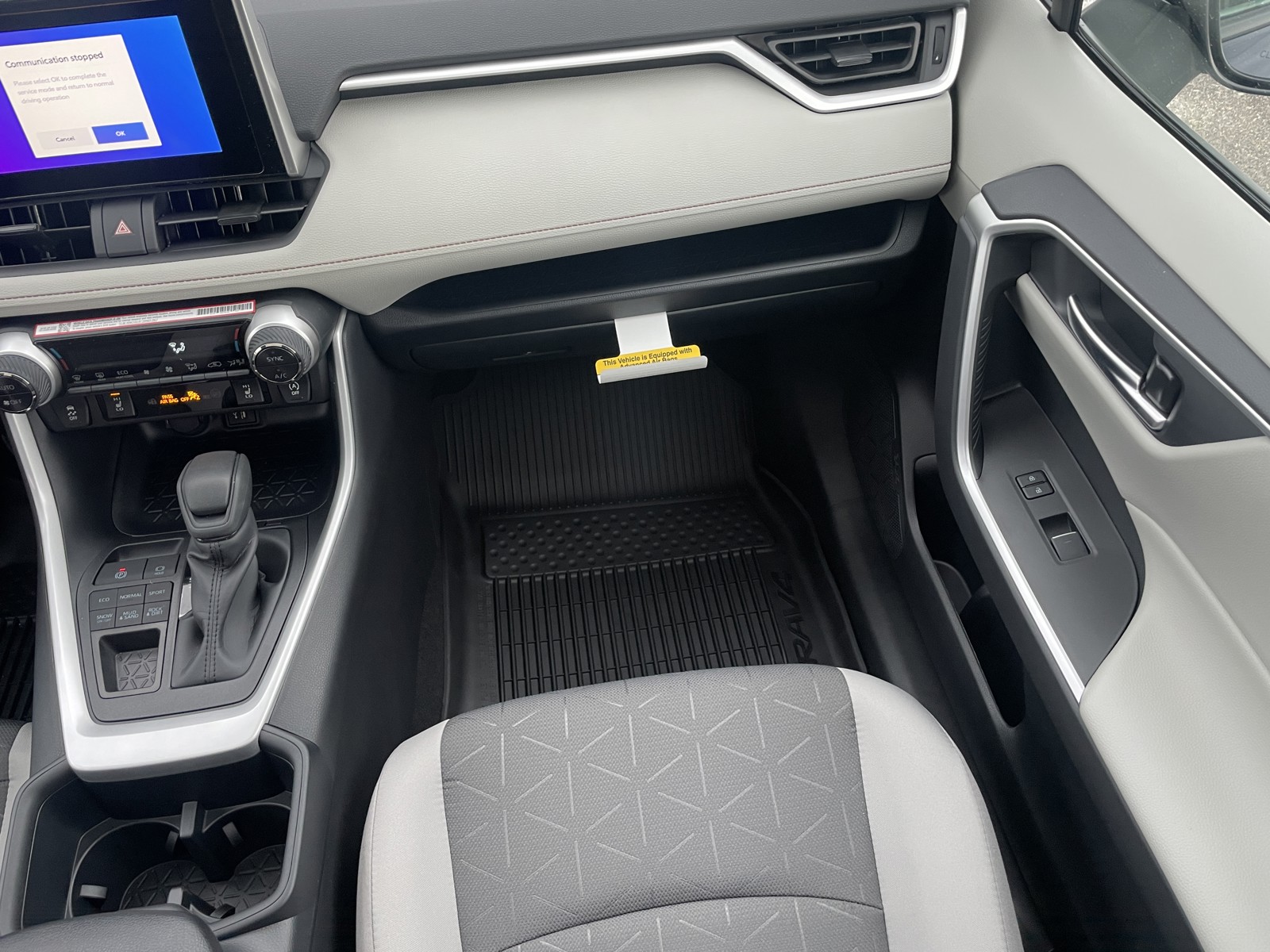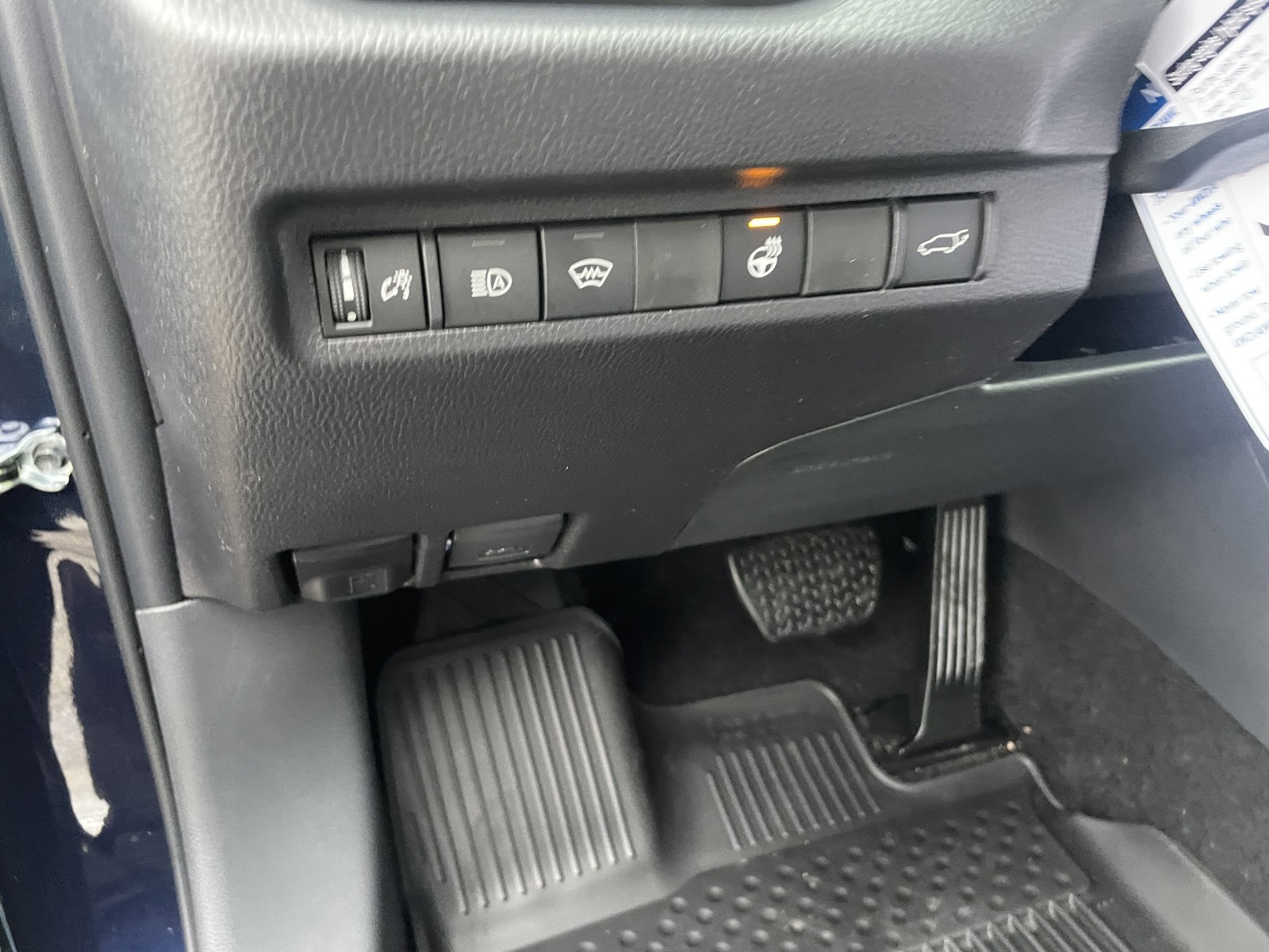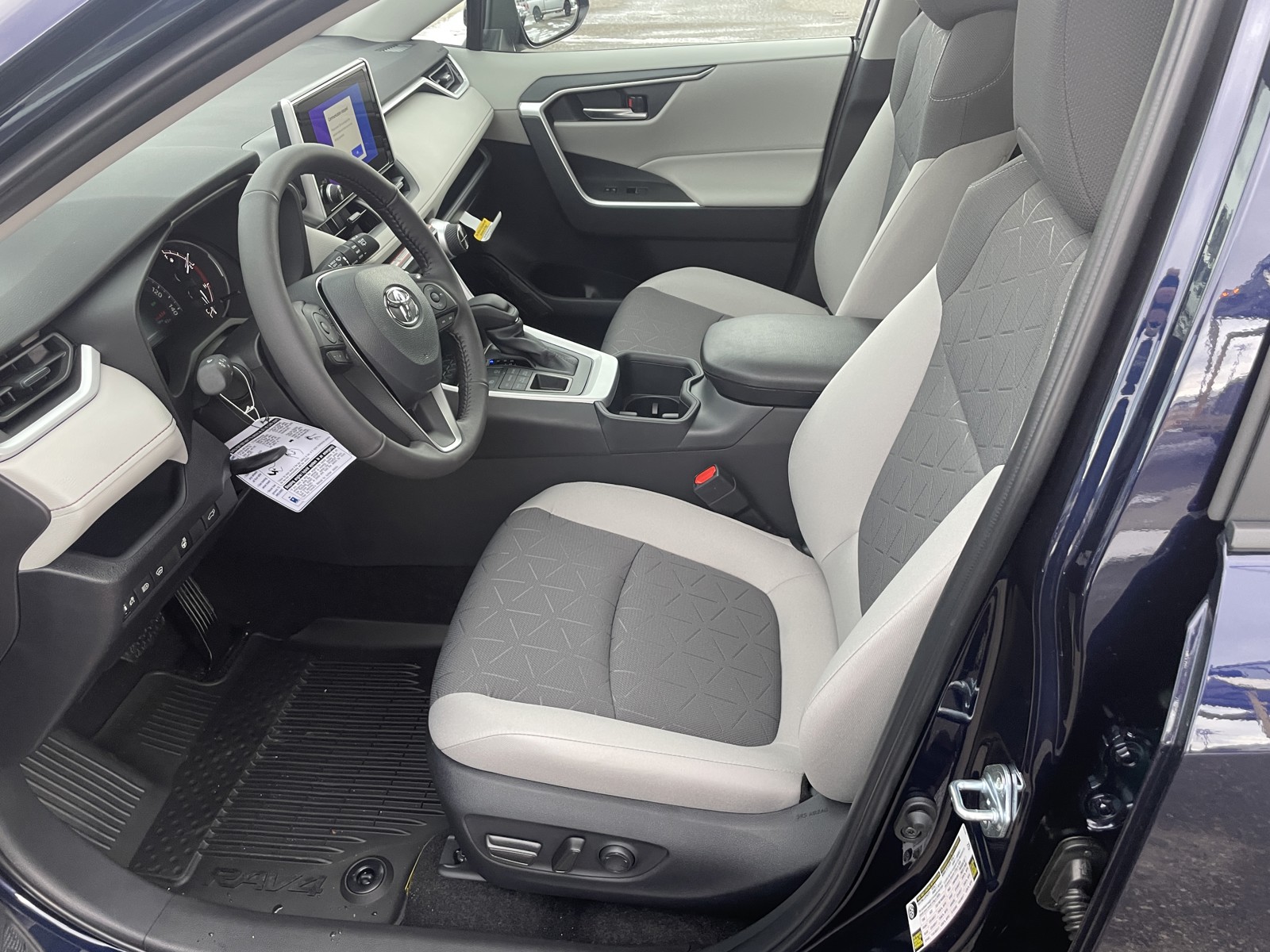 - Black carpet flooring with driver-side footrest