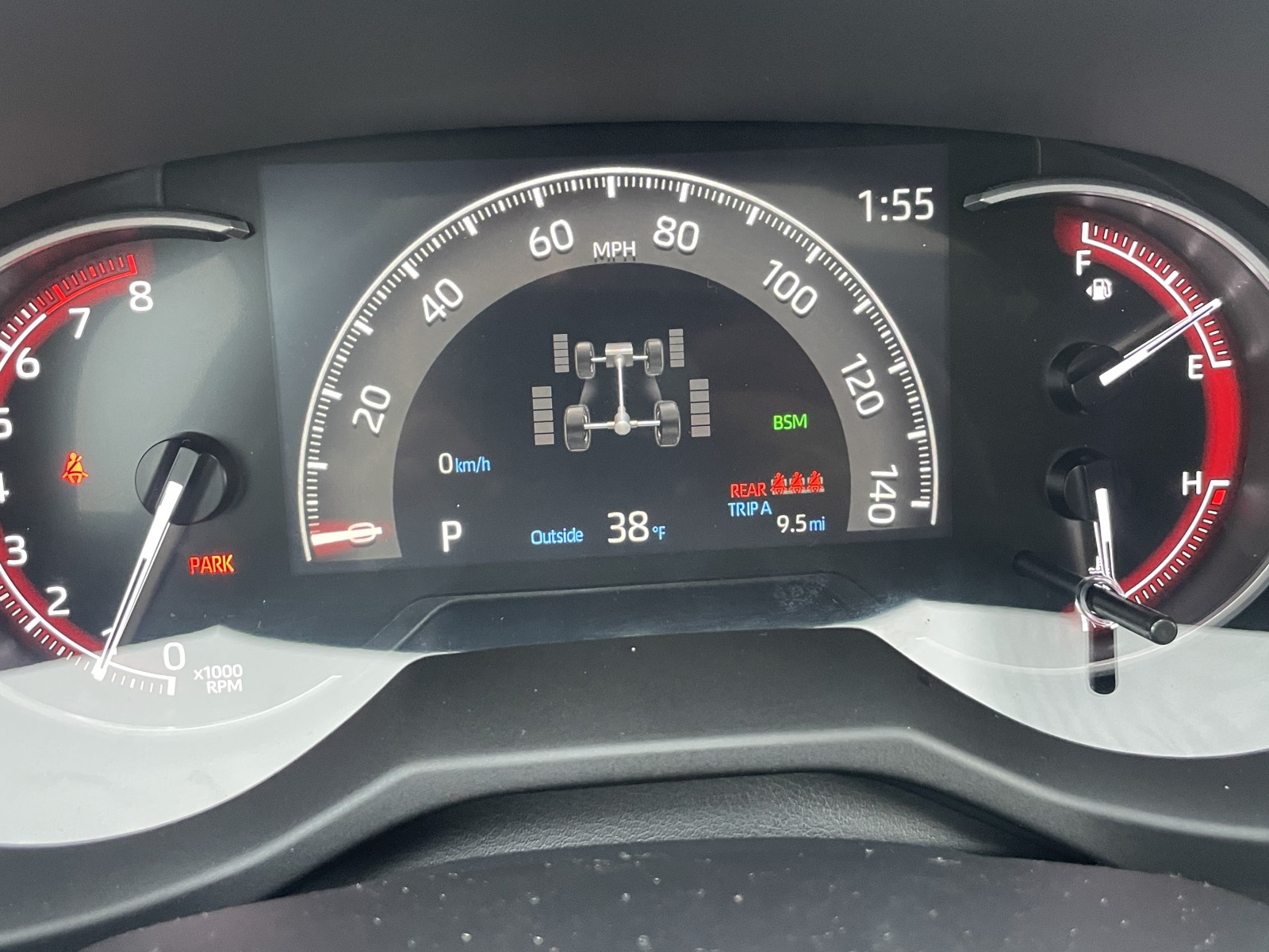 - Digital speedometer and instrumentation with analog tachometer, coolant temperature, and fuel gauges; 7-in. digital Multi-Information Display (MID) with customizable settings, odometer, tripmeters, clock, outside temperature, rear passenger seatbelt indicators, fuel economy information, trip timer, shift-position and scheduled maintenance indicators, and warning messages