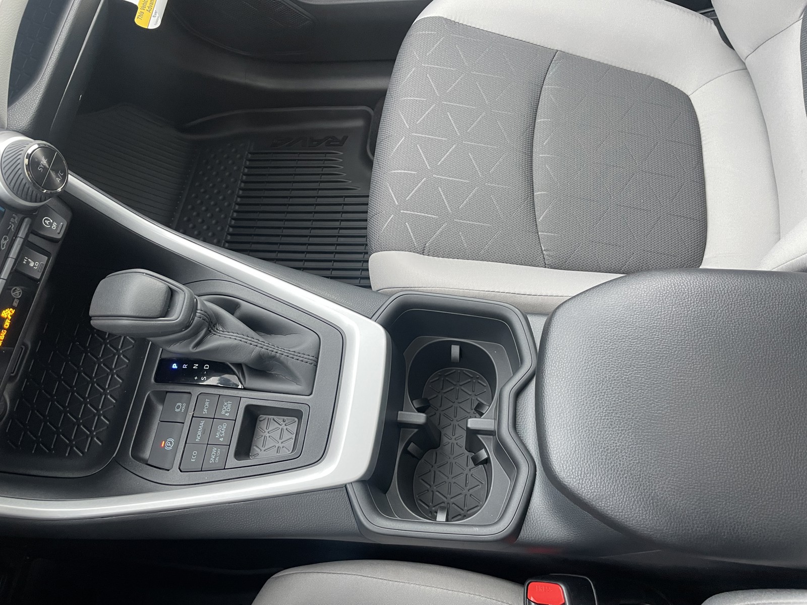 - Center console with covered storage compartment, two cup holders, drive mode, Multi-Terrain Select (MTS), Electric Parking Brake (EPB) and automatic Brake Hold controls, and front storage tray