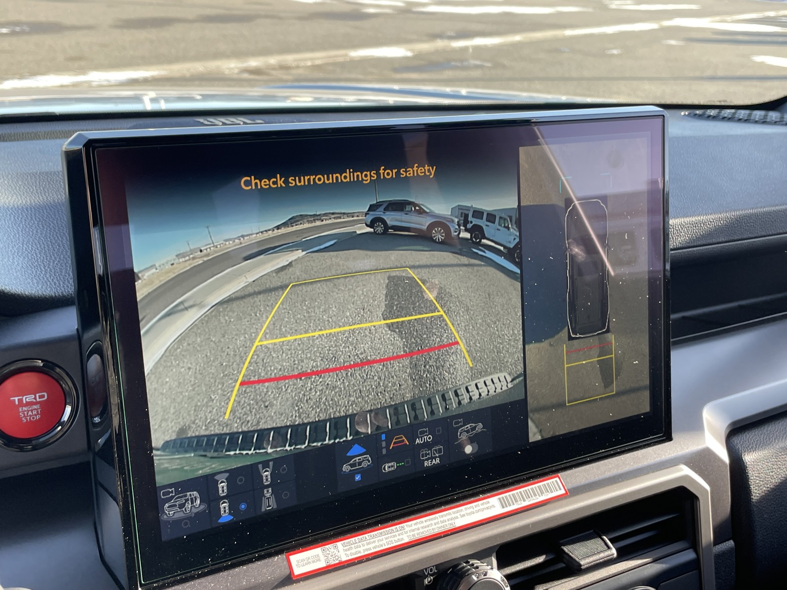 - Integrated backup camera display with projected path