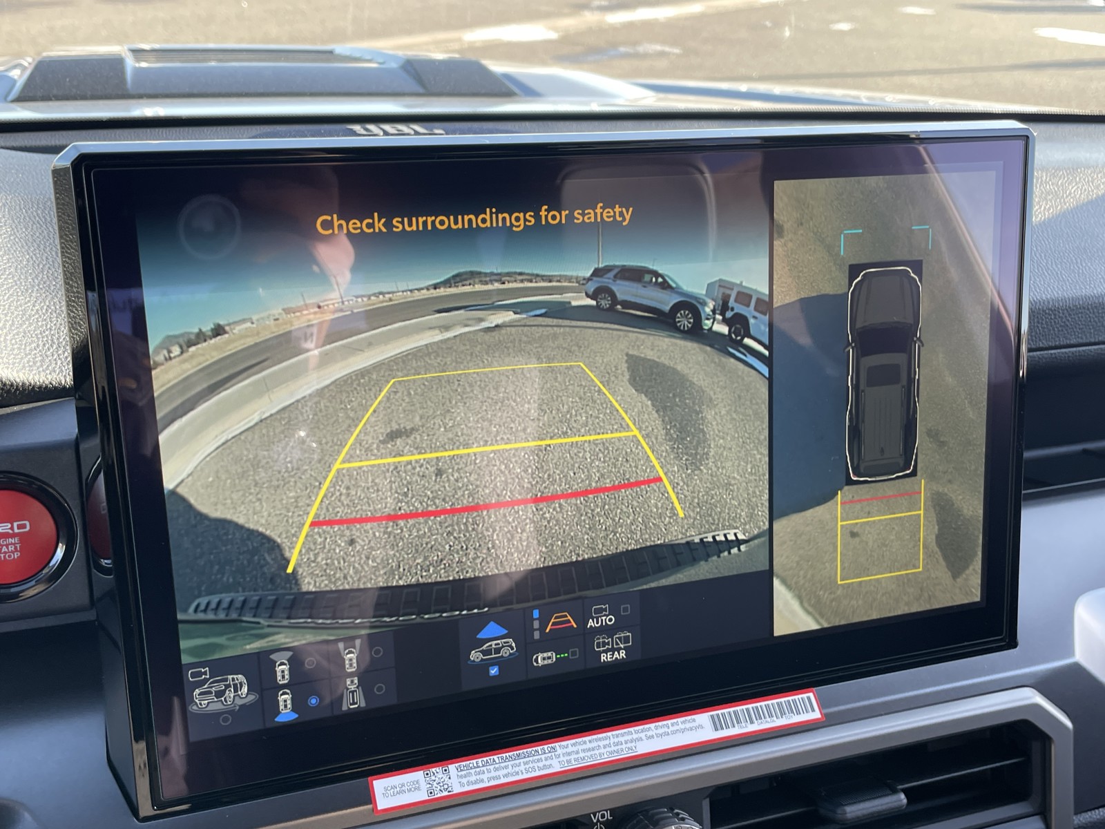 - Integrated backup camera display with projected path