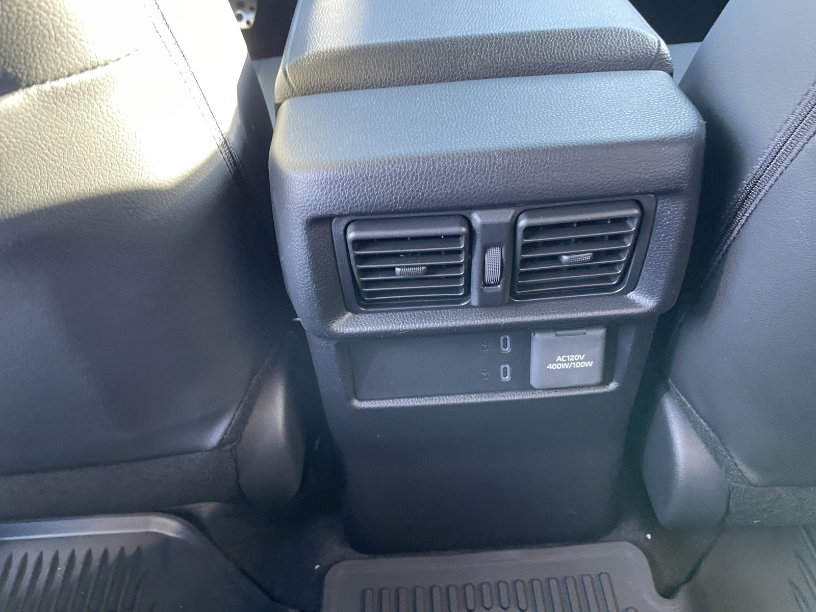- One center console 12V auxiliary power outlet and two 120V/400W AC power outlets in the rear seat and cargo area