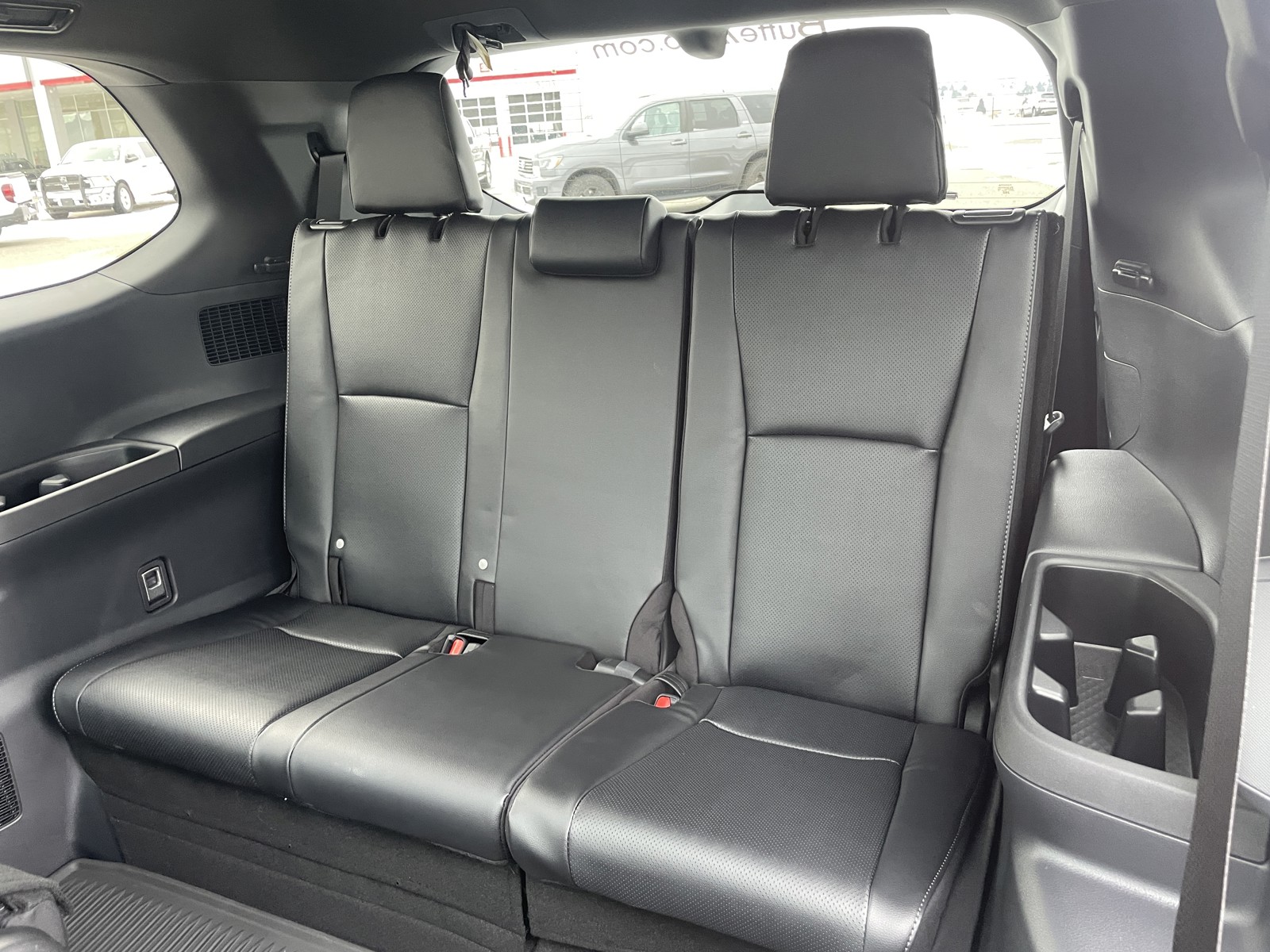 - 7-passenger seating with second-row fold-down captain's chairs and fold-down inboard armrests, adjustable headrests and two cup holders mounted on the floor; and 60/40 split, fold-down third-row seats with sliding headrests and recline function