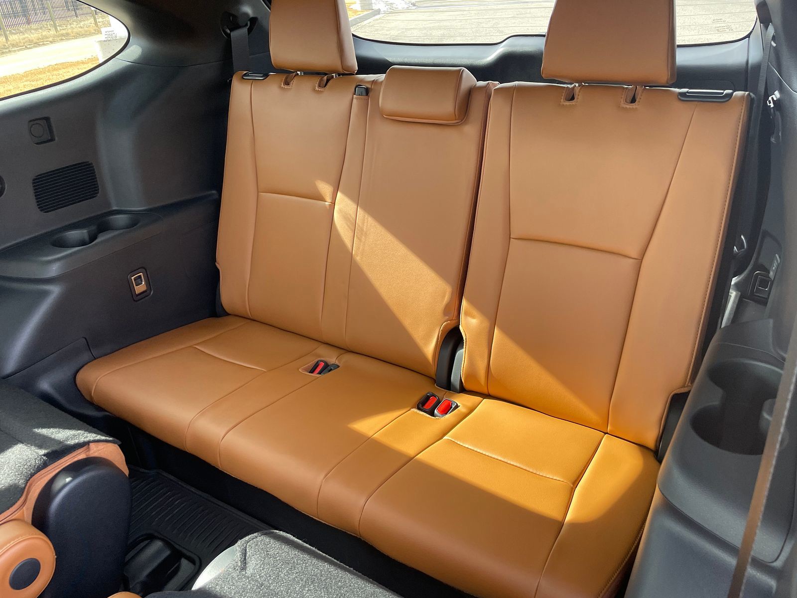 - 7-passenger seating with second-row fold-down captain's chairs and fold-down inboard armrests, adjustable headrests and two cup holders mounted on the floor; and 60/40 split, fold-flat third-row seats with sliding headrests and recline function