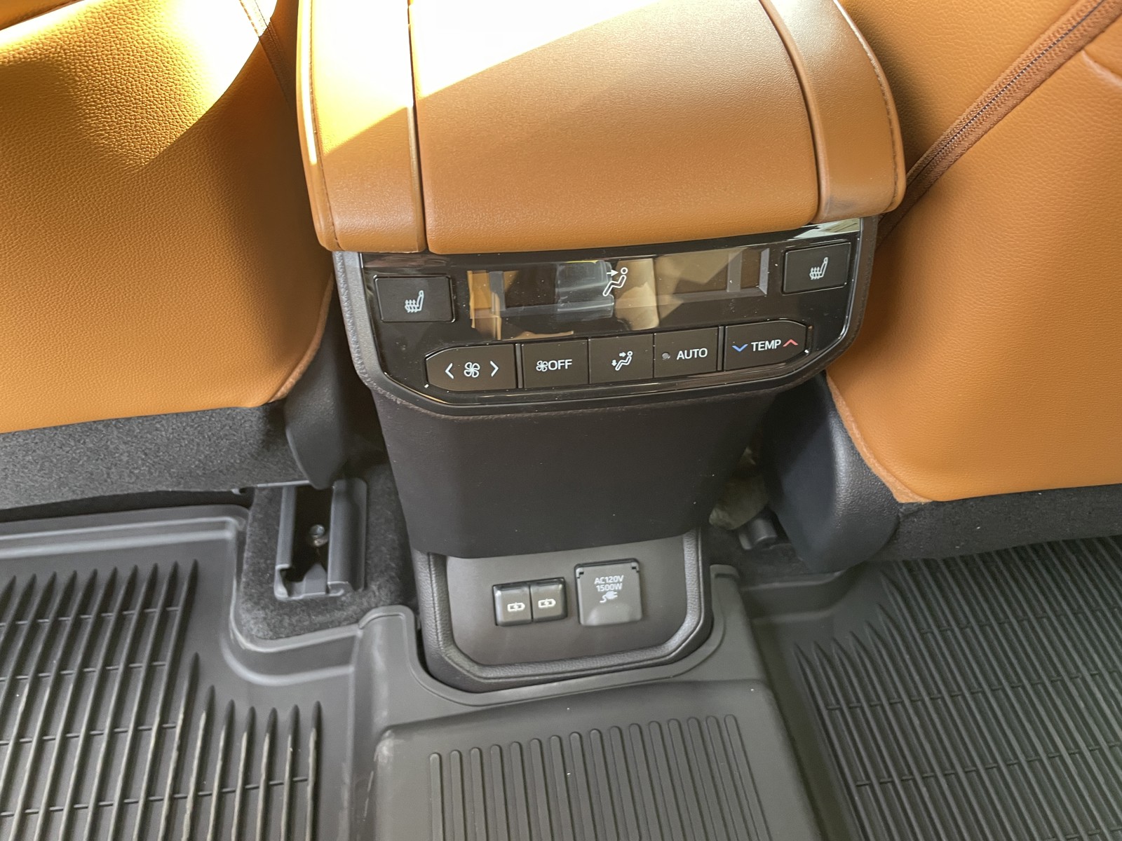 - Two 120V outlets (1500W shared) located on the bottom rear of center console and in the luggage area