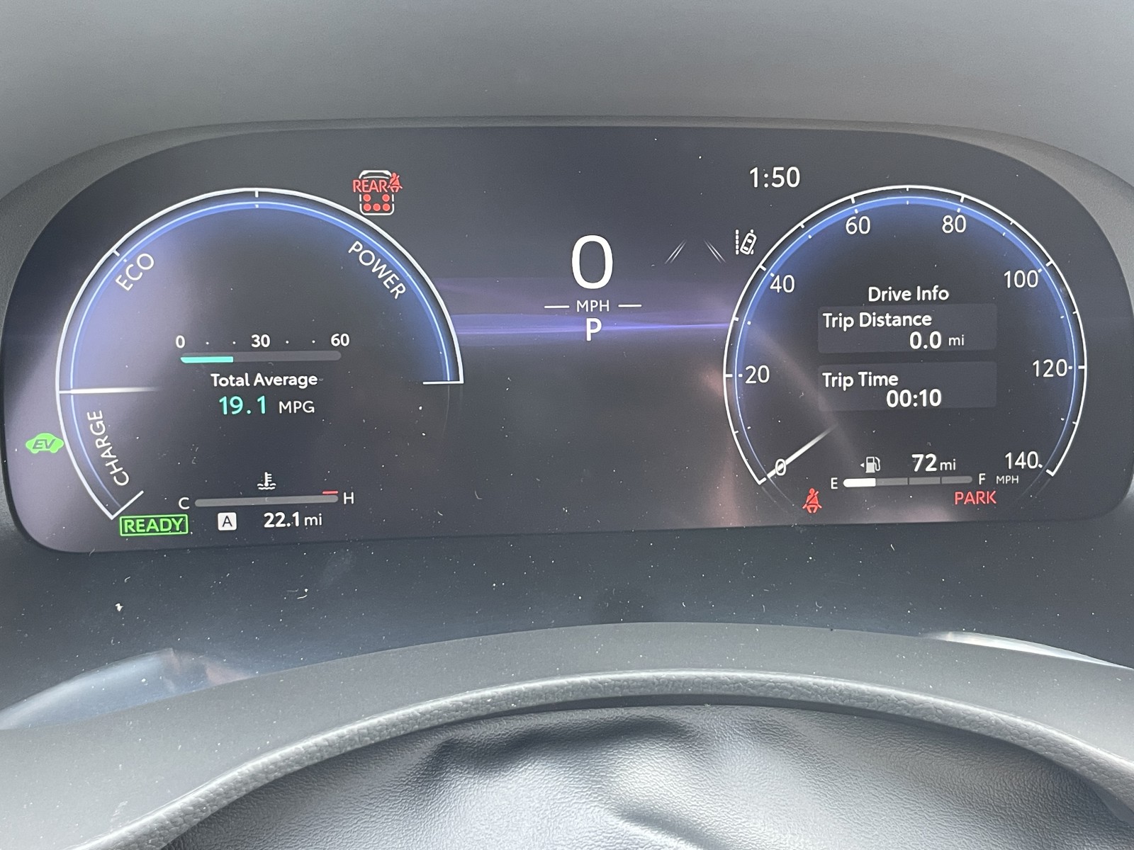 - 12.3-in. color digital gauge cluster with odometer, trip/average fuel economy, cruising range, average speed, AWD torque distribution (AWD models only), cruise control guide, audio details, hands-free incoming call notices, telephone information, Eco Driving Indicator, and energy monitor (HV models only)