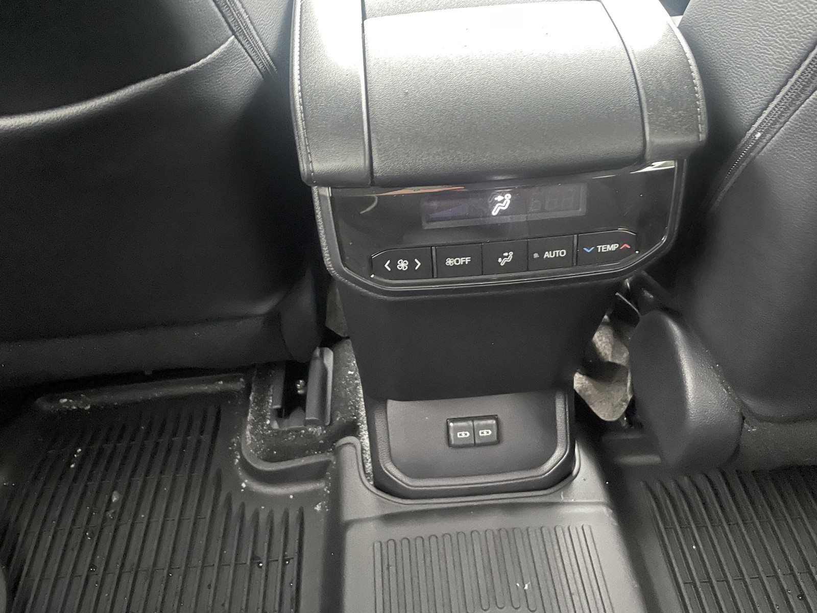 - Five USB ports (one USB-A media port and four USB-C charging ports) and two 12V outlets