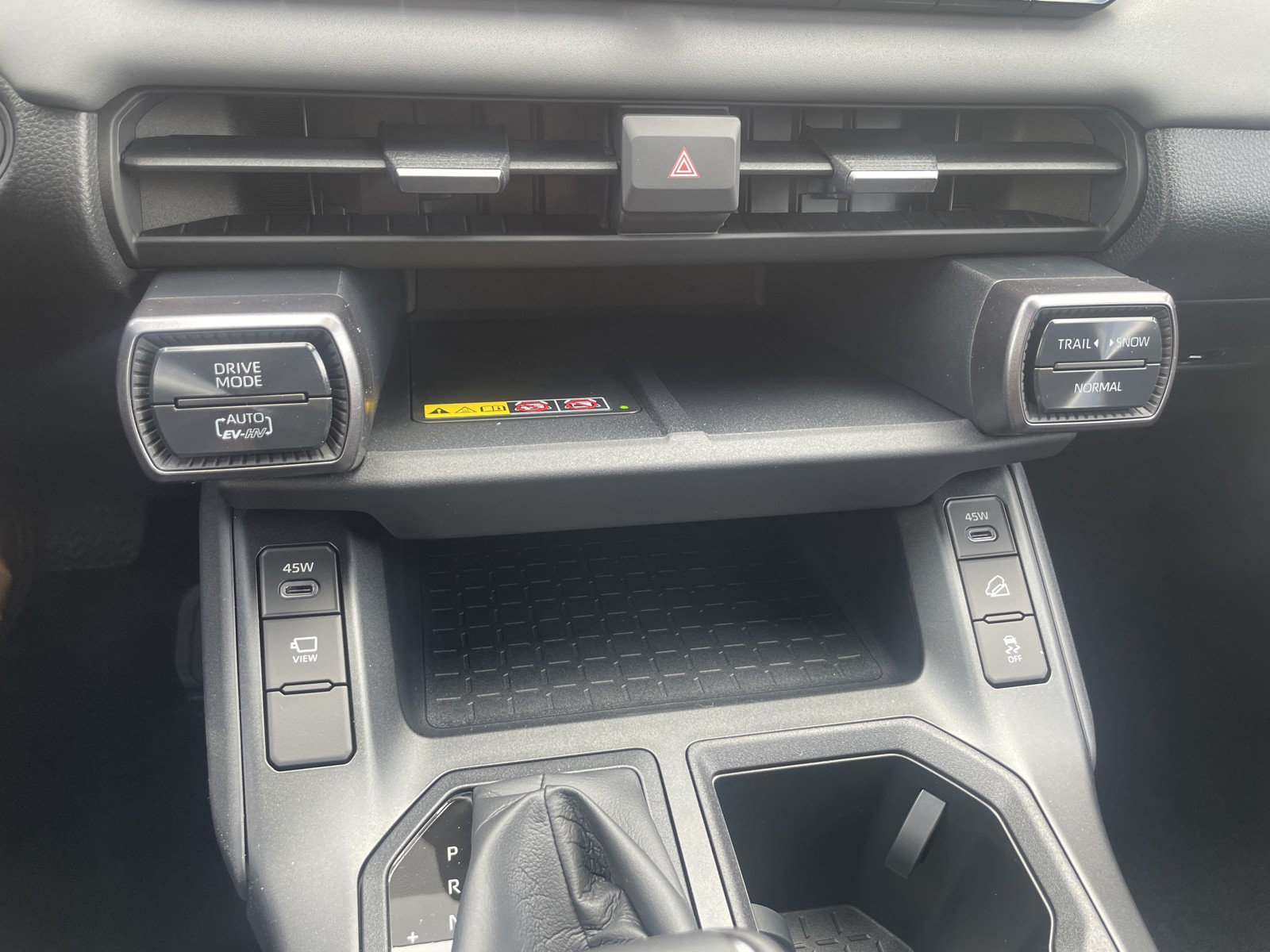 - Center console with covered storage compartment, reversible armrest/console tray, two cup holders, drive mode (trail, snow, normal and EV mode), auto LSD/VSC, Electric Parking Brake (EPB) and automatic Brake Hold controls, and front storage tray