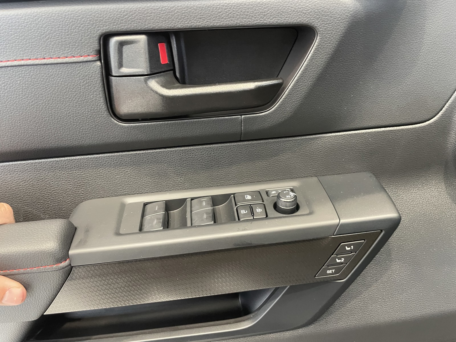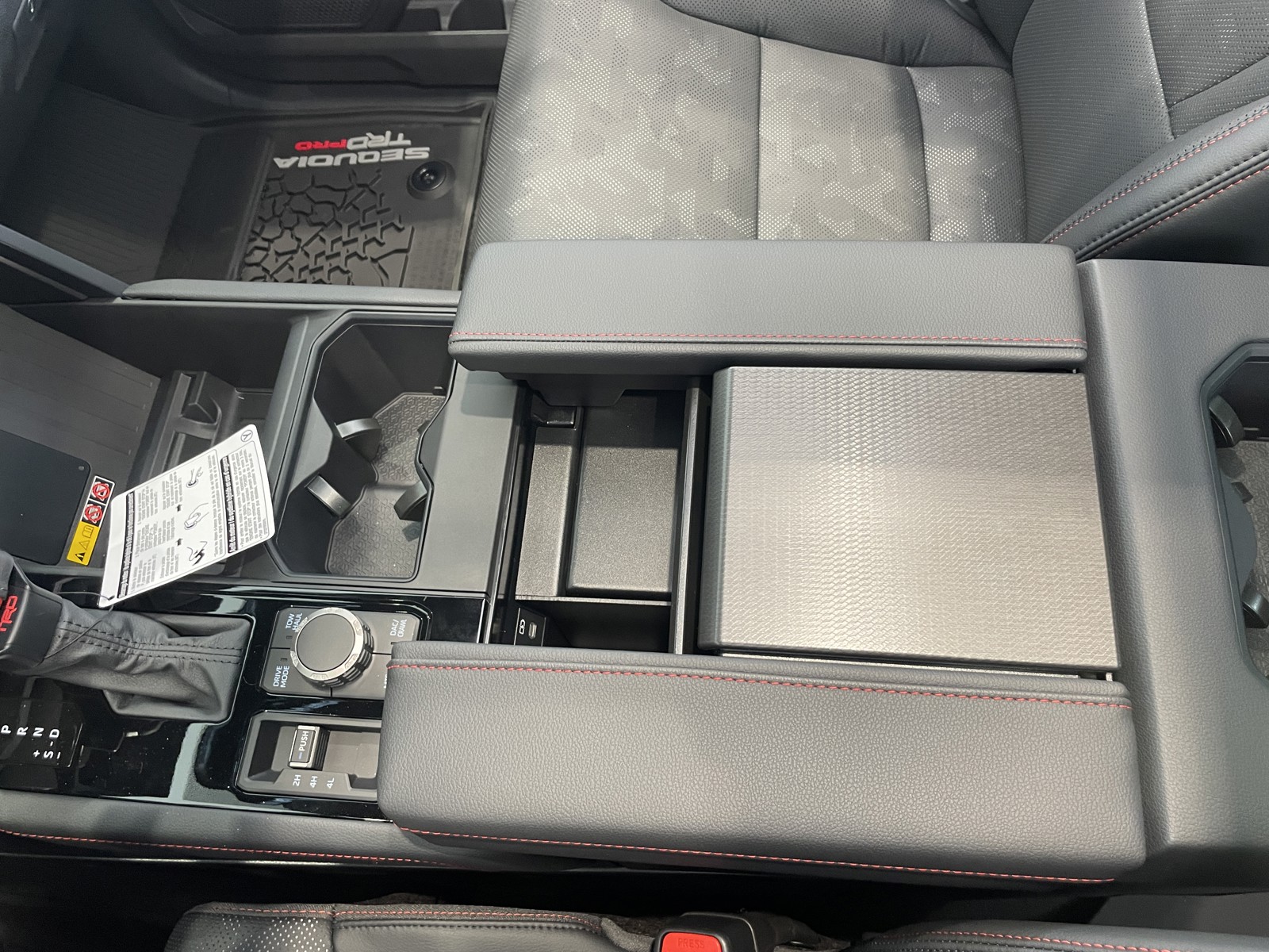 - TRD Pro red-striped leather-wrapped shift knob