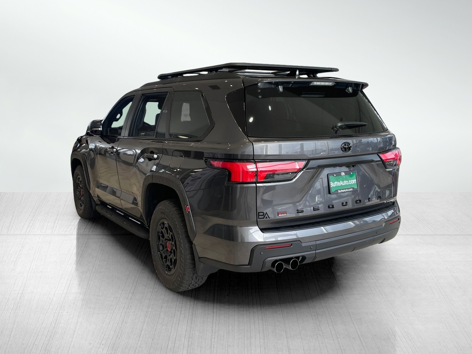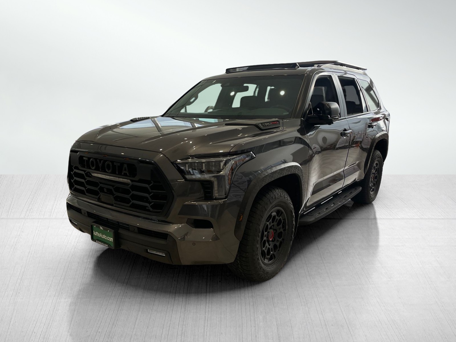 Color-keyed door handles; satin-black outside mirror caps and roof railsPremium LED headlights with black trim, LED Daytime Running Lights (DRL), sequential turn signals, and automatic leveling adjustment18-in. TRD Pro matte-black forged-aluminum BBS® wheels with TRD center caps -