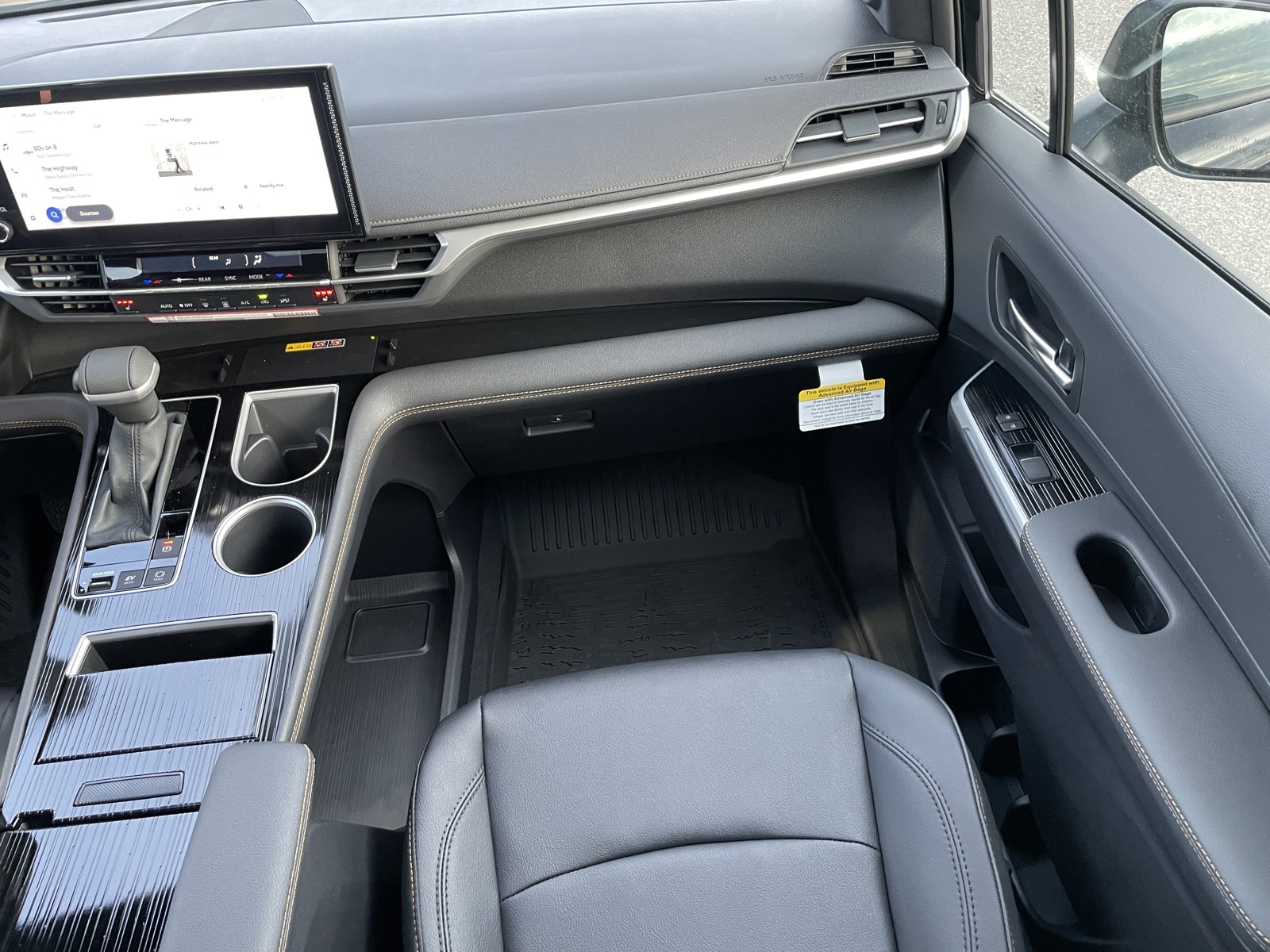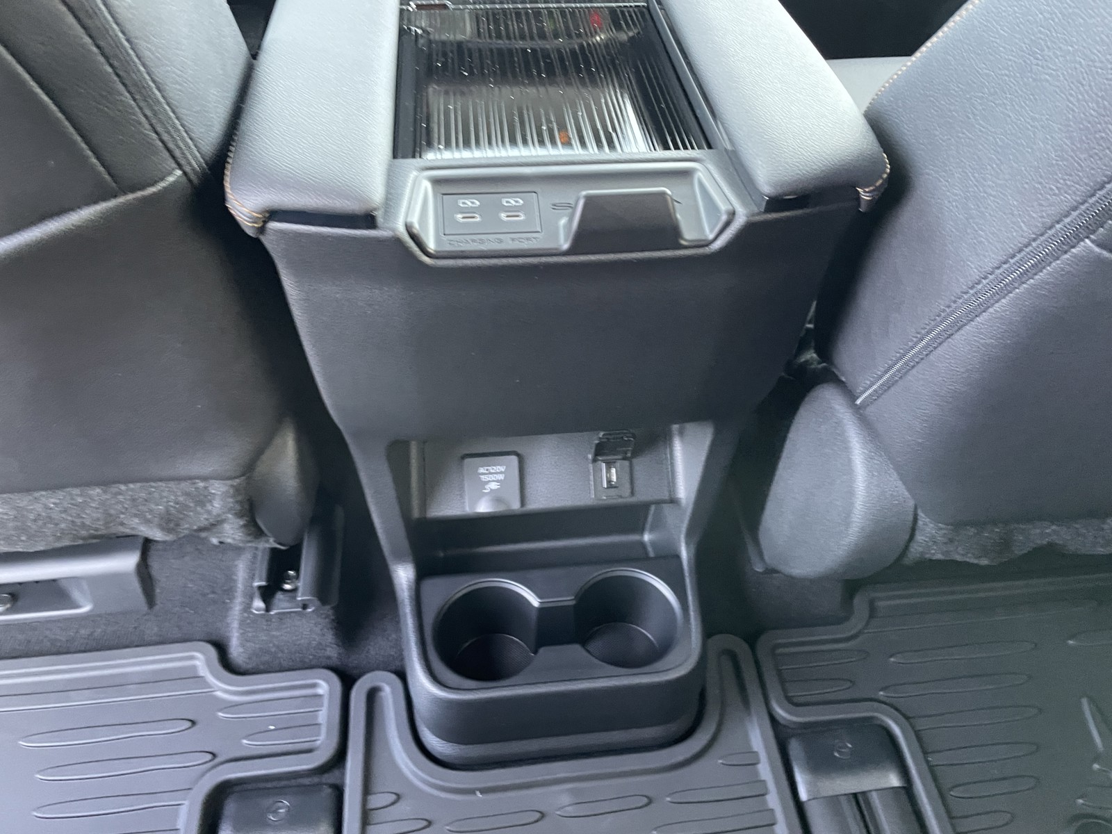 - Fixed center console, pass-through, illuminated storage compartment, and four cup holders