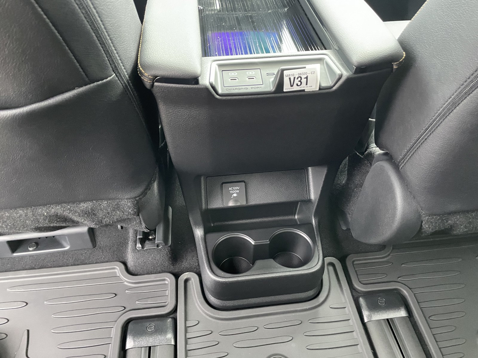 - Fixed center console, pass-through, illuminated storage compartment, and four cup holders