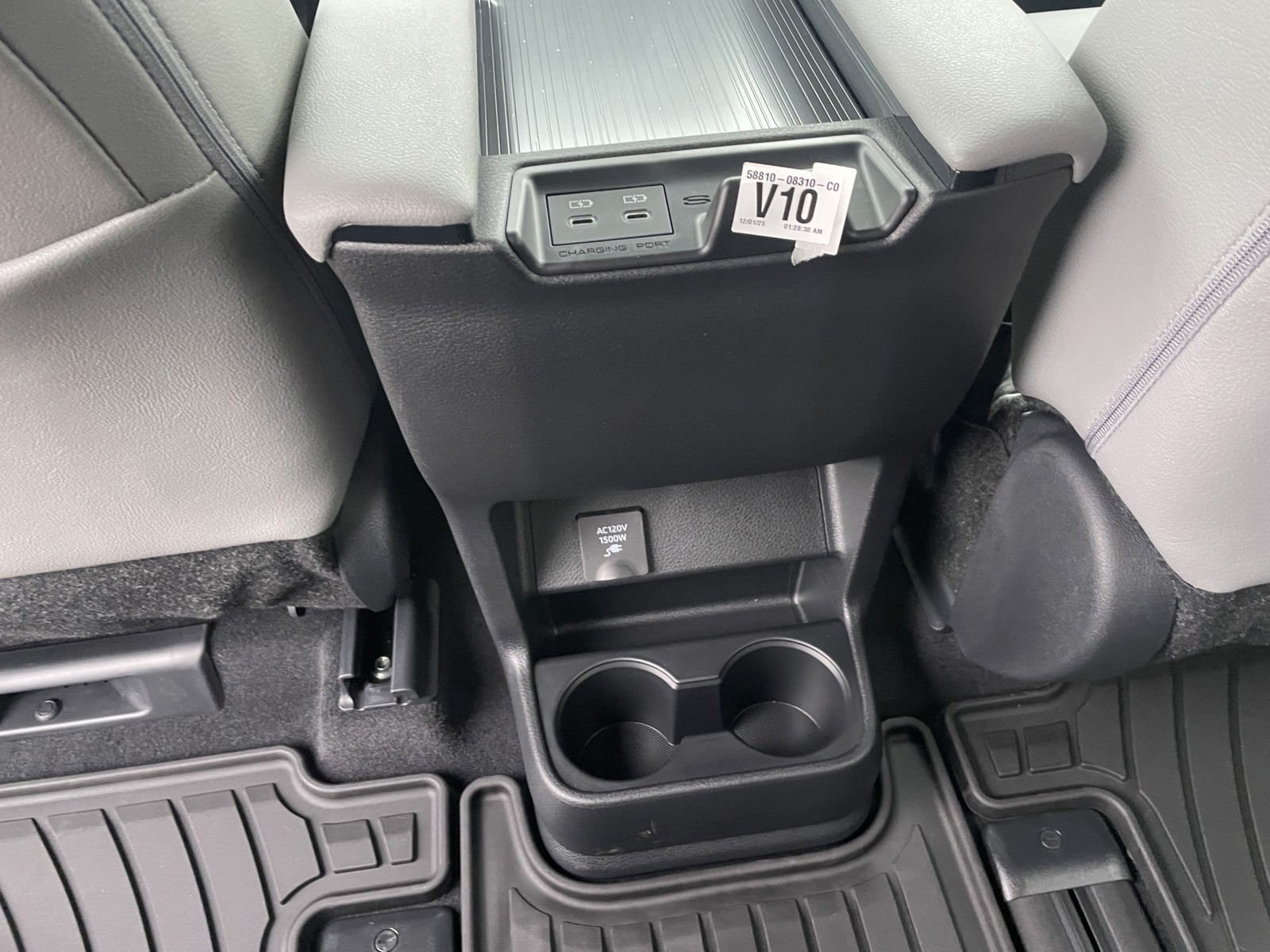 - Fixed center console, pass-through, illuminated storage compartment, and four cup holders