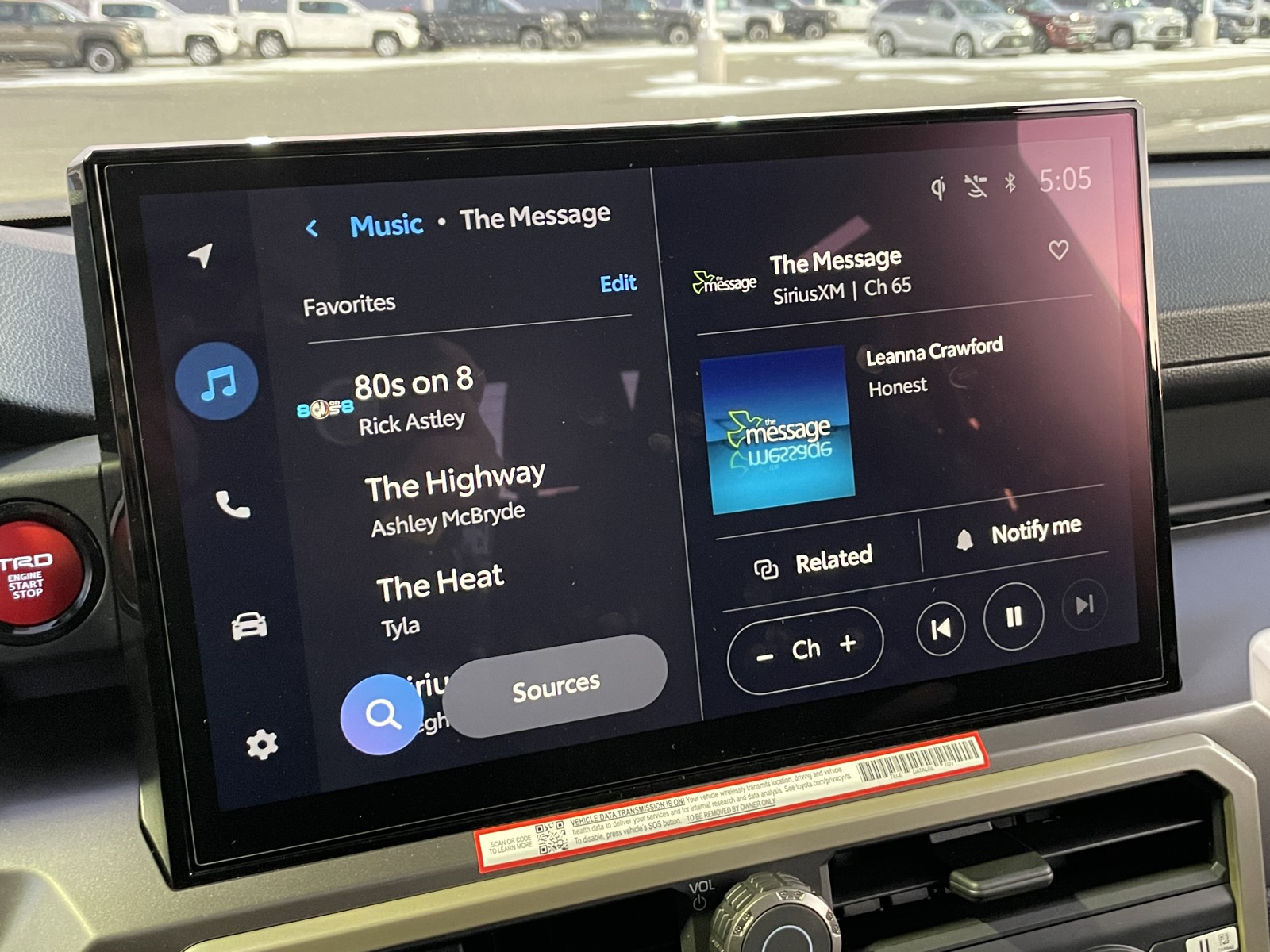- 8-in. Toyota Audio Multimedia display with 6-speaker audio system, wireless Apple CarPlay® & Android Auto™ compatibility, SiriusXM® 3-month trial subscription. See toyota.com/connected-services for details.