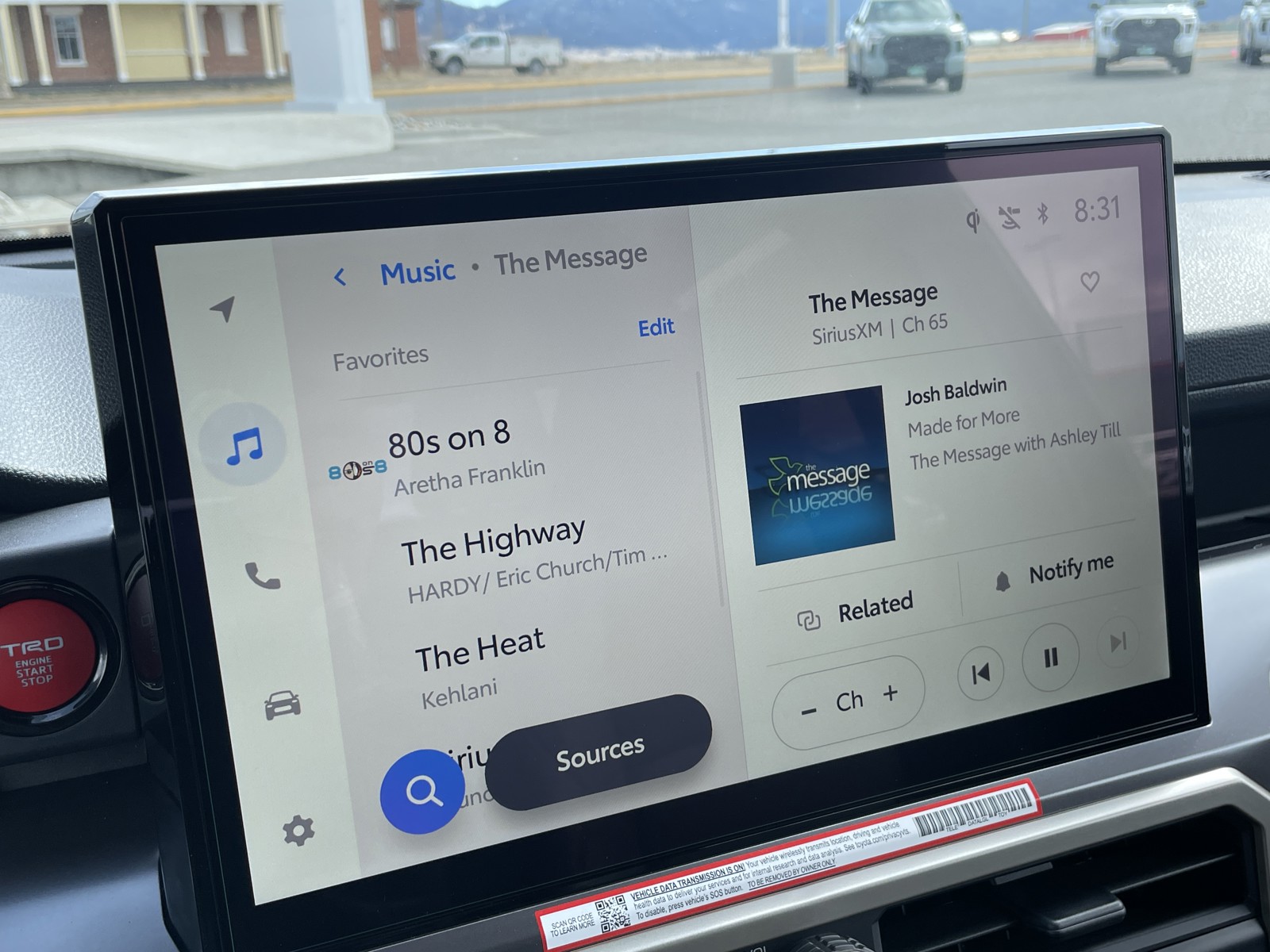 - 8-in. Toyota Audio Multimedia display with 6-speaker audio system, wireless Apple CarPlay® & Android Auto™ compatibility, SiriusXM® 3-month trial subscription. See toyota.com/connected-services for details.