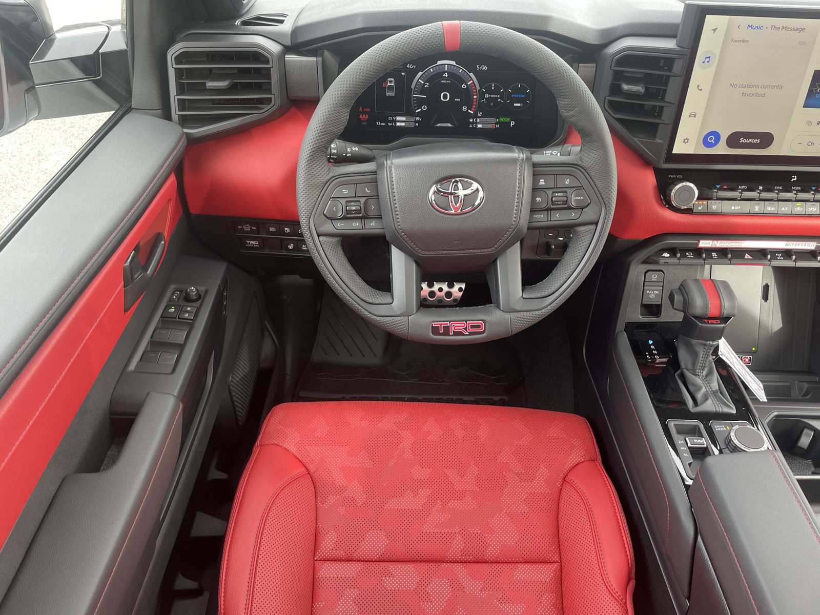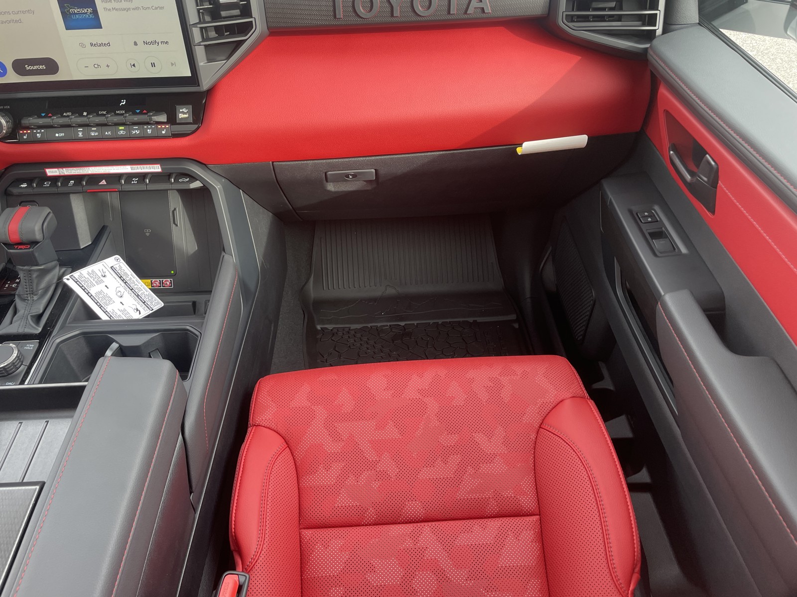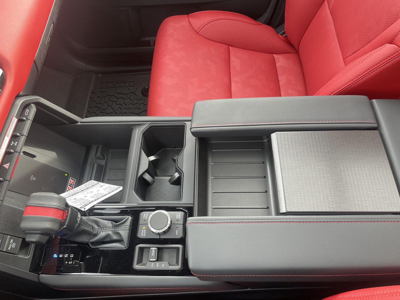 - TRD red-striped leather-wrapped shift knob
