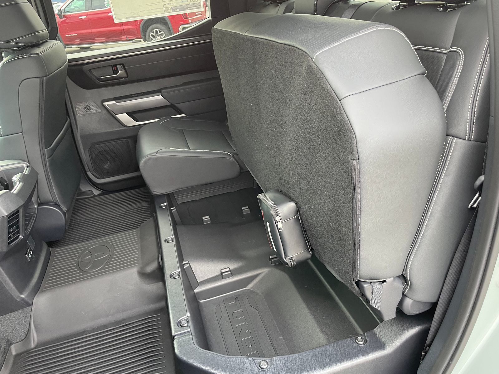 - Rear under-seat storage compartment with removable and adjustable partitions