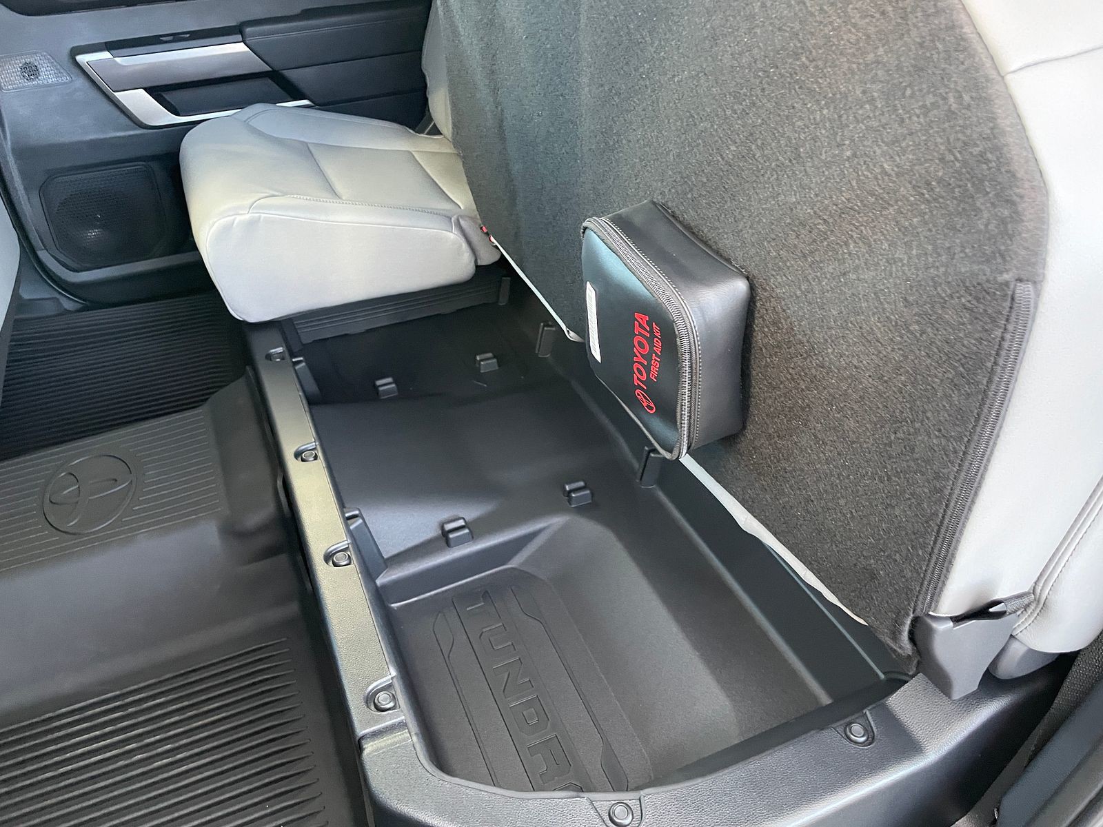 - Rear under-seat storage compartment with removable and adjustable partitions