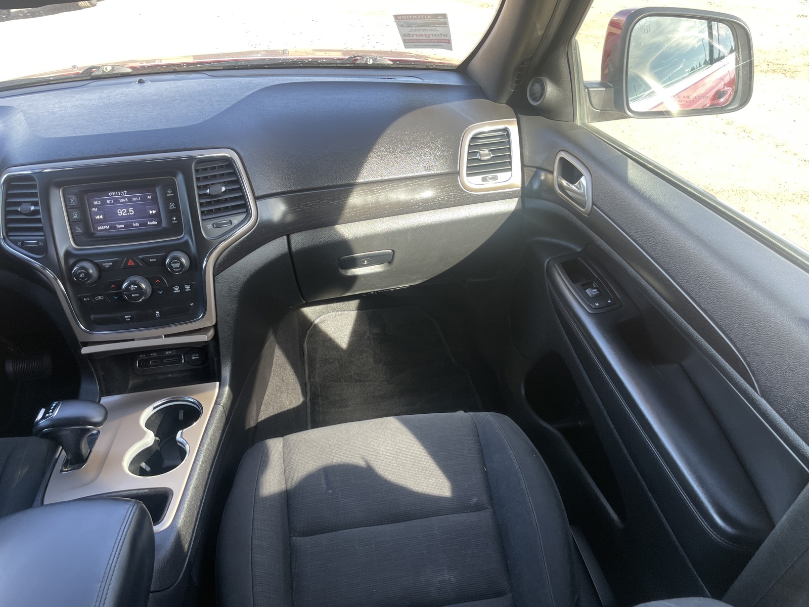 This vehicle features a hands-free Bluetooth phone system. This unit offers Automatic Climate Control for personalized comfort. With the keyless entry system on this unit you can pop the trunk without dropping your bags from the store. When you encounter slick or muddy roads, you can engage the four wheel drive on this Jeep Grand Cherokee and drive with confidence. It gleams with a flashy red exterior. The Jeep Grand Cherokee has a V6, 3.6L high output engine. Set the temperature exactly where you are most comfortable in it. The fan speed and temperature will automatically adjust to maintain your preferred zone climate. It has an automatic transmission. The Jeep Grand Cherokee has fog lights for all weather conditions. The Jeep Grand Cherokee is equipped with a gasoline engine. Easily set your speed in the Jeep Grand Cherokee with a state of the art cruise control system. Increase or decrease velocity with the touch of a button.