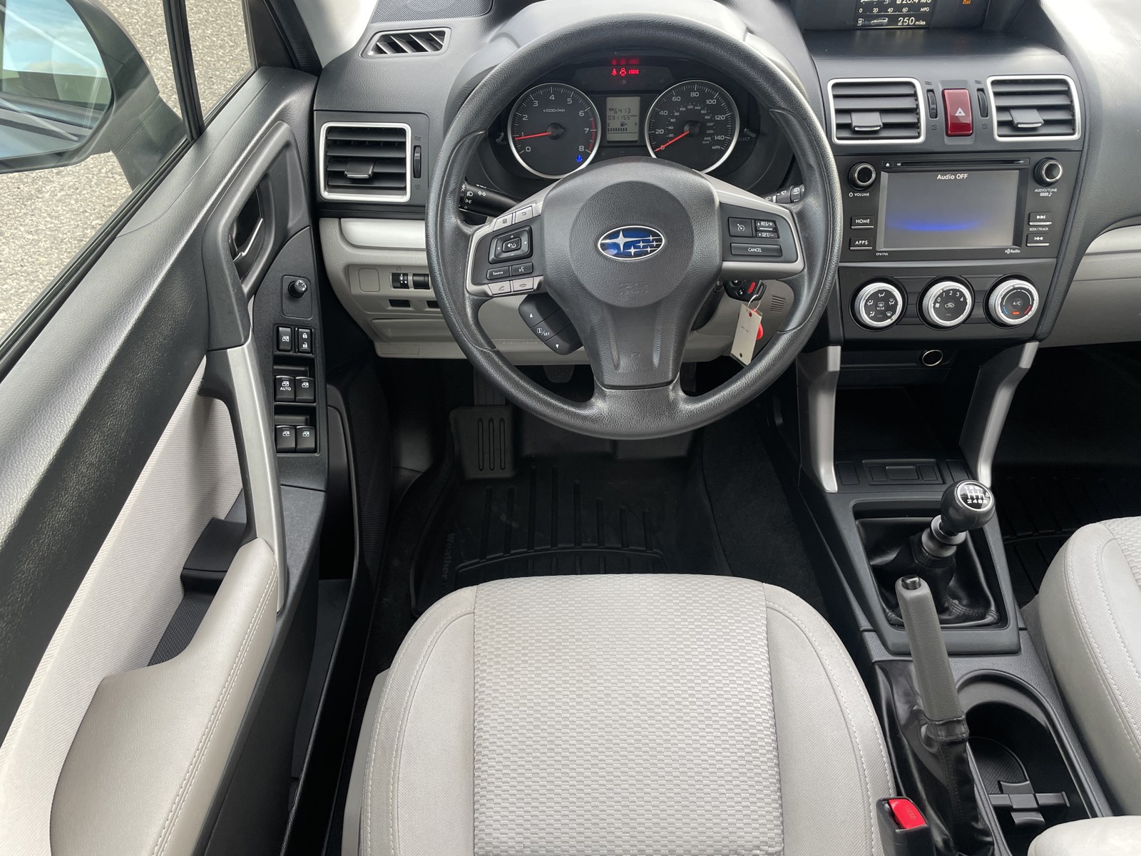 See what's behind you with the back up camera on the vehicle. Bluetooth technology is built into this model, keeping your hands on the steering wheel and your focus on the road. The Subaru Forester has a 4 Cyl, 2.5L high output engine. The Subaru Forester is equipped with all wheel drive. This unit emanates grace with its stylish gray exterior. Maintaining a stable interior temperature in this model is easy with the climate control system. Enjoy the tried and true gasoline engine in the Subaru Forester. Electronic Stability Control is one of many advanced safety features on the Subaru Forester. Easily set your speed in this Subaru Forester with a state of the art cruise control system. Increase or decrease velocity with the touch of a button. This unit comes with a manual transmission. The spacious cabin accommodates your family and friends in comfort. Take it to the mountains or the beach. this model can handle it all.