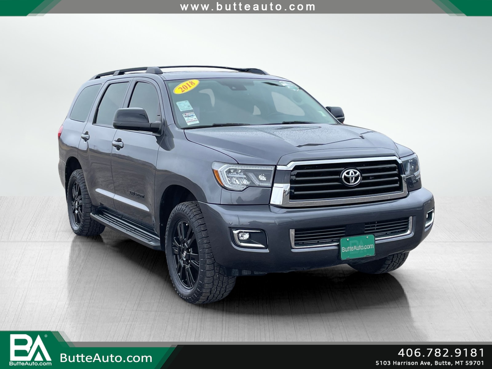 Bluetooth technology is built into the vehicle, keeping your hands on the steering wheel and your focus on the road. Protect it from unwanted accidents with a cutting edge backup camera system. The vehicle's Cross-Traffic Alert: Safeguarding you from unexpected traffic when reversing. You'll never again be lost in a crowded city or a country region with the navigation system on this 1/2 ton suv. This 2018 Toyota Sequoia offers Automatic Climate Control for personalized comfort. This 1/2 ton suv enhances safety with a blind spot monitor, alerting drivers to potential dangers in adjacent lanes. The leather seats in the Toyota Sequoia are a must for buyers looking for comfort, durability, and style. Set the temperature exactly where you are most comfortable in the vehicle. The fan speed and temperature will automatically adjust to maintain your preferred zone climate. This 2018 Toyota Sequoia has a V8, 5.7L high output engine.