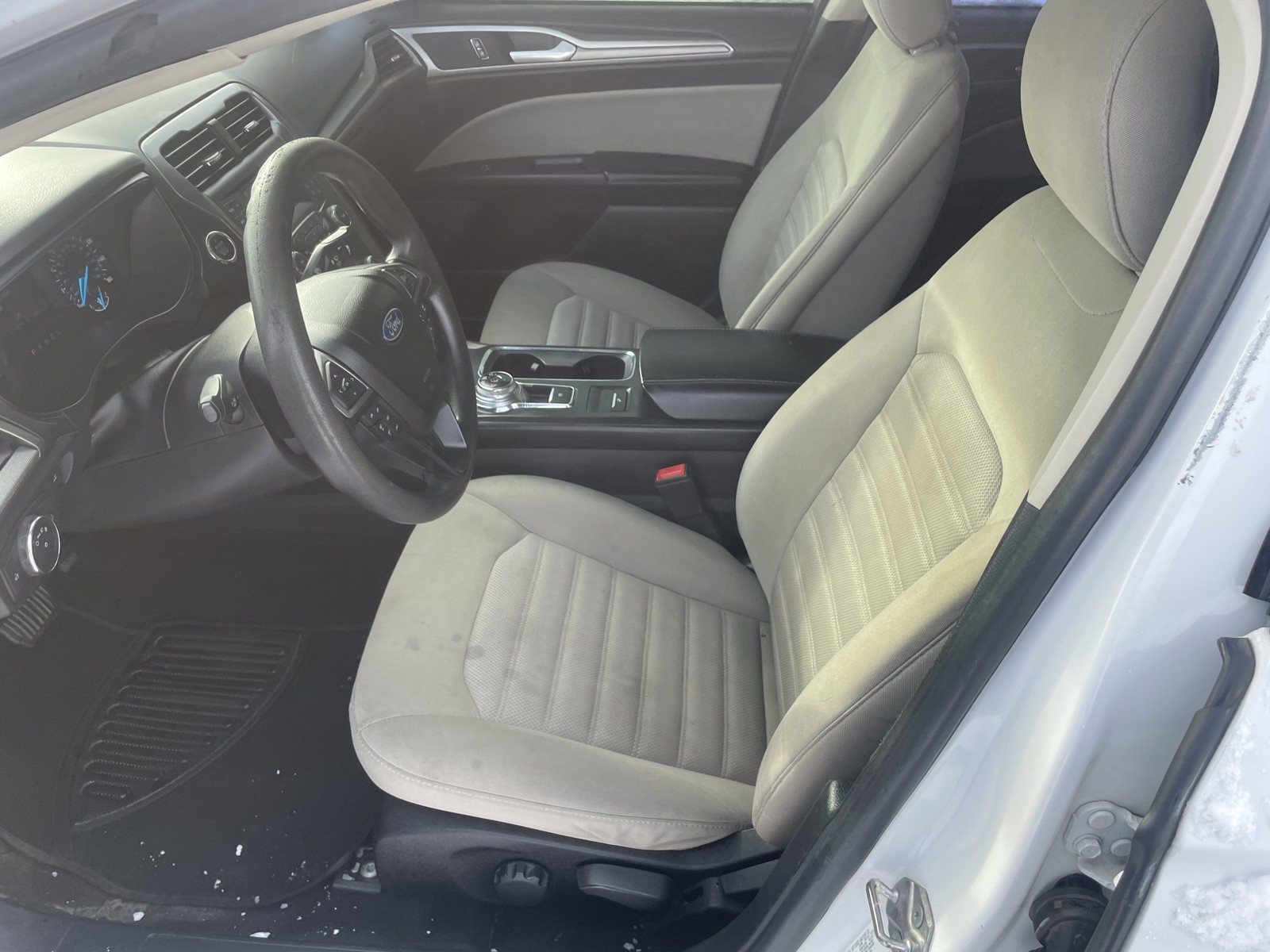 Protect the Ford Fusion from unwanted accidents with a cutting edge backup camera system. Bluetooth technology is built into this vehicle, keeping your hands on the steering wheel and your focus on the road. Set the temperature exactly where you are most comfortable in this 2019 Ford Fusion . The fan speed and temperature will automatically adjust to maintain your preferred zone climate. It is front wheel drive. The vehicle has a 4 Cyl, 2.5L high output engine. The vehicle shines with clean polished lines coated with an elegant white finish. This mid-size car is equipped with a gasoline engine. It has an automatic transmission. Easily set your speed in it with a state of the art cruise control system. Increase or decrease velocity with the touch of a button. The Electronic Stability Control will keep you on your intended path. Just the right size to accommodate all your needs. It has room for passengers and plenty of trunk space.