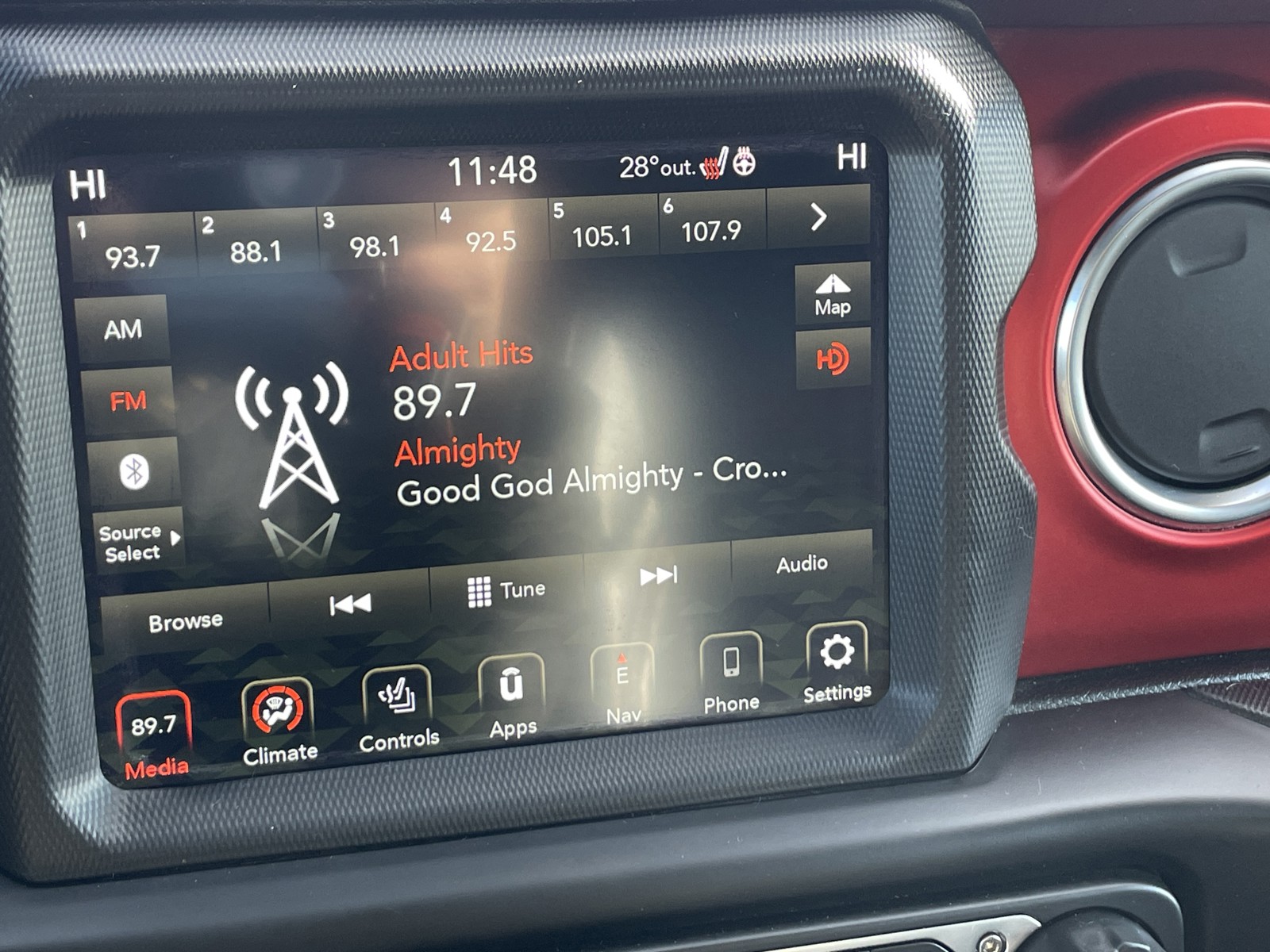 Cold Weather Group: Remote Start System; Heated Front Seats; Heated Steering Wheel. LED Lighting Group: Daytime Running Lamps LED Accents; Front LED Fog Lamps; LED Reflector Headlamps; LED Taillamps. Quick Order Package 24R. Trailer Tow and Heavy Duty Electrical Group: Class II Receiver Hitch; 700 Amp Maintenance Free Battery; 7 and 4 Pin Wiring Harness; Auxiliary Switches; 240 Amp Alternator. 8.4" Radio and Premium Audio Group: SiriusXM Traffic Plus; Alpine Premium Audio System; HD Radio; Uconnect 4C Navigation Radio with 8.4" Display; For Details. Visit DriveUconnect.com; Rear View Auto Dim Mirror; 1-Year SiriusXM Guardian Trial; 5-Year SiriusXM Travel Link Service; GPS Navigation; 5-Year SiriusXM Traffic Service; SiriusXM Travel Link; 4G LTE Wi-Fi Hot Spot; Emergency/assistance Call; 8.4" Touchscreen Display. Steel Bumper Group: Steel Front Bumper; Steel Rear Bumper. Quick Order Package 23R. Leather Trimmed Bucket Seats. Alpine Premium Audio System. Black 3-Piece Hard Top. Body Color Fender Flares. Remote Proximity Keyless Entry. Remote Start System. **Equipment listed is based on original vehicle build and subject to change. Please confirm the accuracy of the included equipment by calling the dealer prior to purchase.**