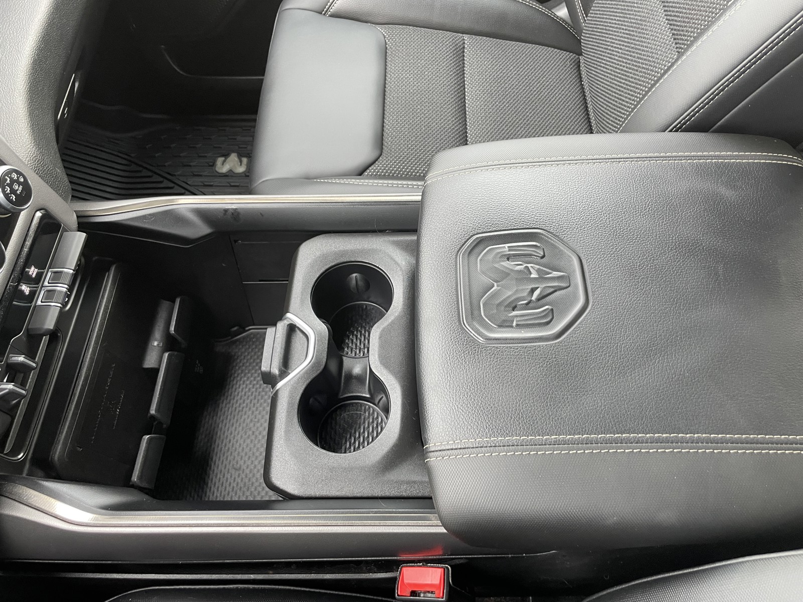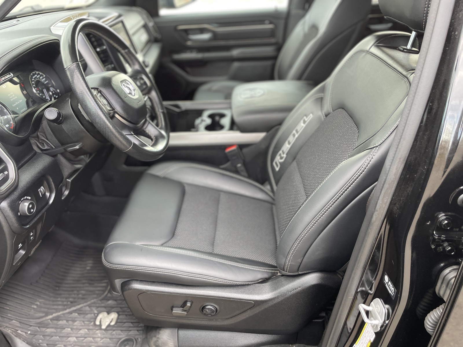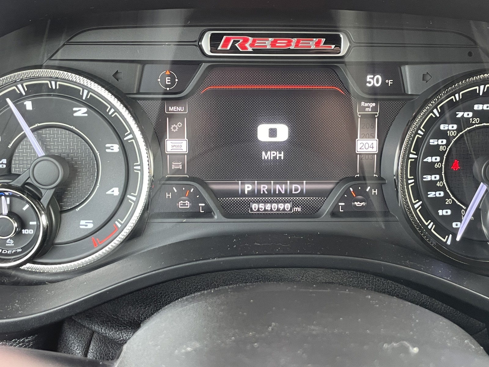 Cold Weather Group: Engine Block Heater; MOPAR Winter Front Grille Cover. Comfort/convenience Group: Media Hub with 2 Charge Only USBs; Remote Tailgate Release; Remote Proximity Keyless Entry; Exterior Mirrors with Memory; Heated Second Row Seats; Wireless Charging Pad; Driver Seat Memory; Power 4-Way Passenger Lumbar Adjust; Power 8-Way Driver and Passenger Seats; Body Color Door Handles; Power 4-Way Driver Lumbar Adjust; 115V Auxiliary Rear Power Outlet. Night Edition: Black Front Bumper with Black Plate; Grille Moustache Black Outline Texture 3; 18" X 8.0" Gloss Black Wheels; RAM Grille Badge - Black. Quick Order Package 28W Rebel. Rebel Level 1 Equipment Group: Uconnect 4 Radio with 8.4" Display; Rear Window Defroster; Power Adjustable Pedals; Exterior Mirrors with Supplemental Signals; Rear Dome with On/off Switch Lamp; Exterior Mirrors Courtesy Lamps; Auto Dim Exterior Driver Mirror; Universal Garage Door Opener; Heated Front Seats; Heated Steering Wheel; Power-Folding Mirrors; Foam Bottle Insert (door Trim Panel); Black Premium Power Mirrors; Sun Visors with Illuminated Vanity Mirrors. 33 Gallon Fuel Tank. Trailer Brake Control. Remote Start System. Diamond Black Crystal PC. **Equipment listed is based on original vehicle build and subject to change. Please confirm the accuracy of the included equipment by calling the dealer prior to purchase.**