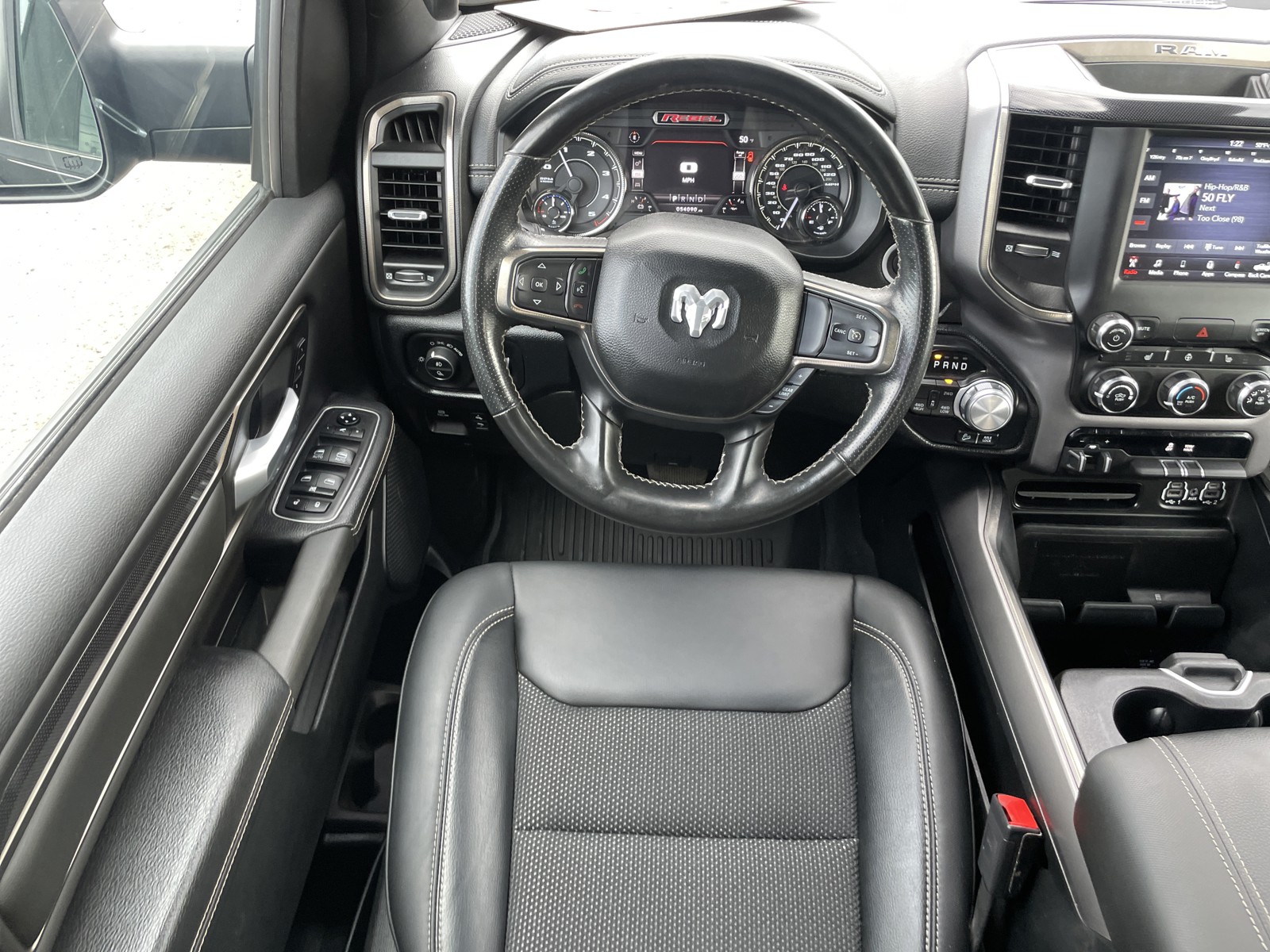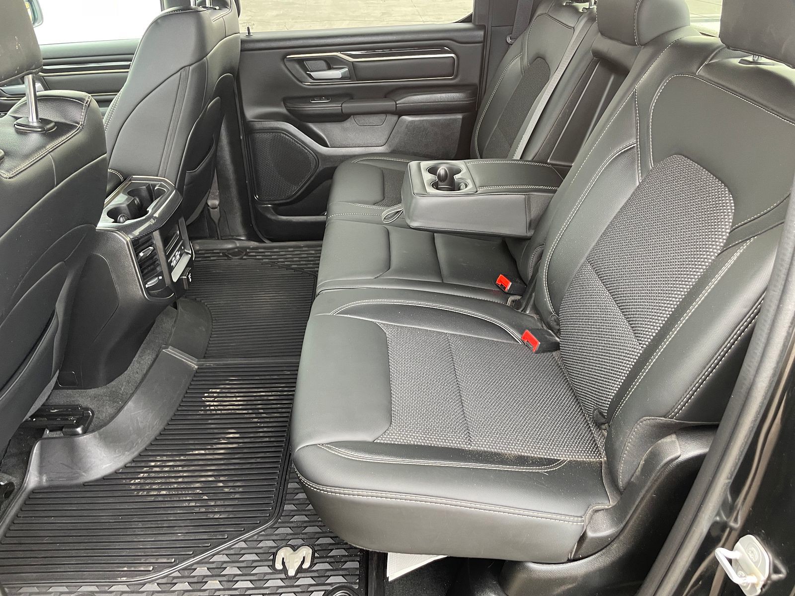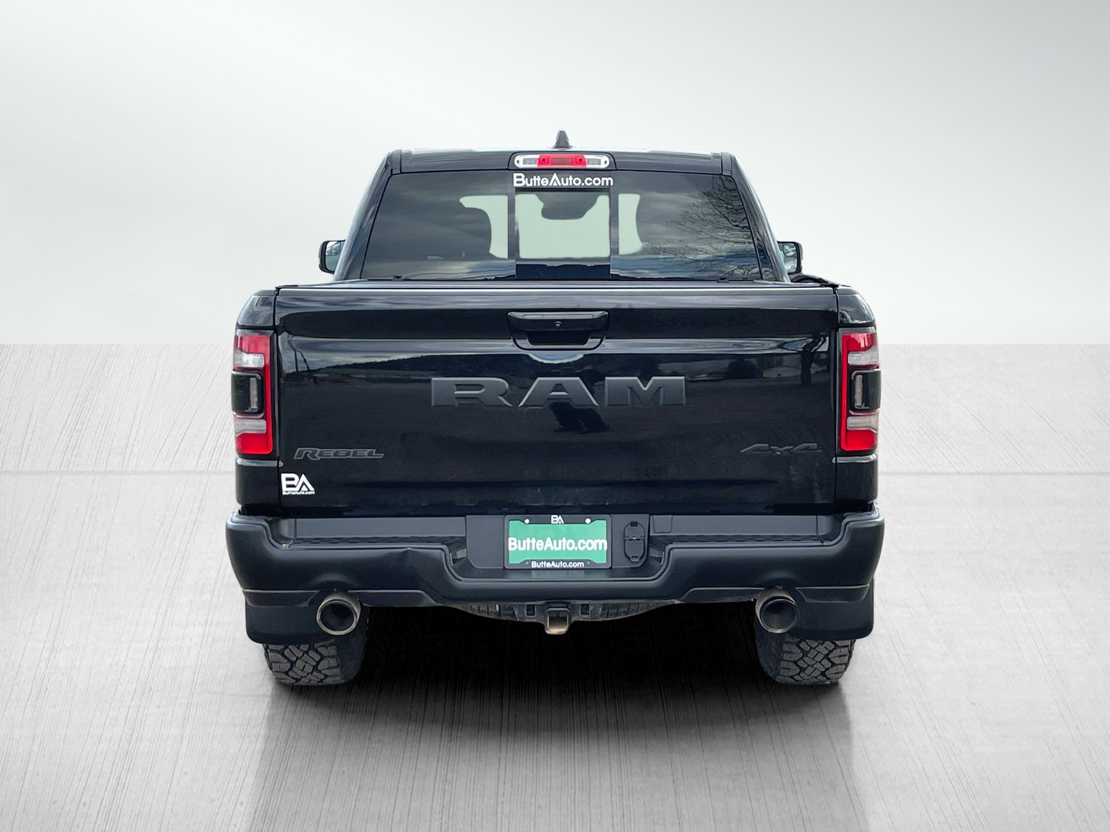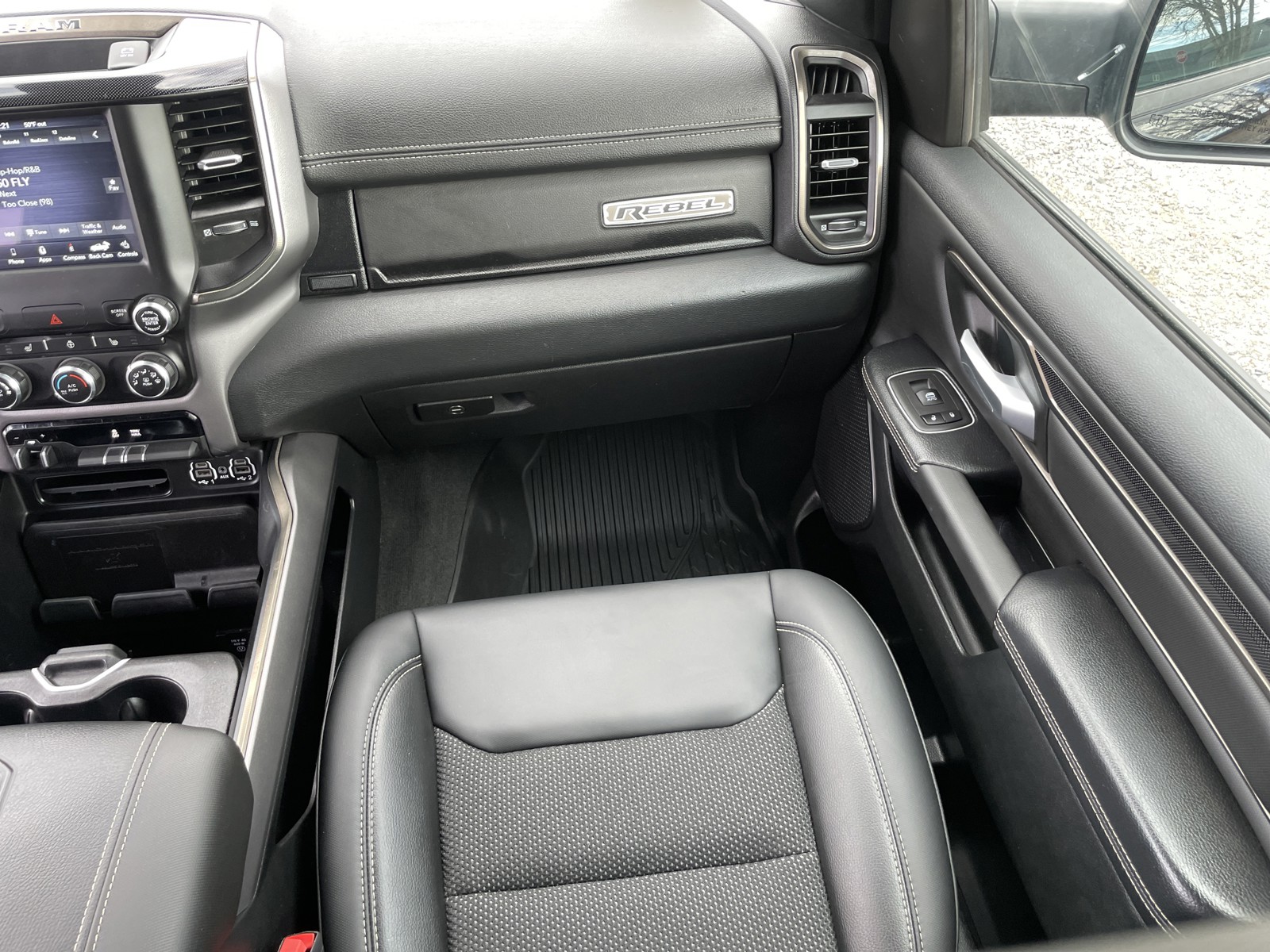 Cold Weather Group: Engine Block Heater; MOPAR Winter Front Grille Cover. Comfort/convenience Group: Media Hub with 2 Charge Only USBs; Remote Tailgate Release; Remote Proximity Keyless Entry; Exterior Mirrors with Memory; Heated Second Row Seats; Wireless Charging Pad; Driver Seat Memory; Power 4-Way Passenger Lumbar Adjust; Power 8-Way Driver and Passenger Seats; Body Color Door Handles; Power 4-Way Driver Lumbar Adjust; 115V Auxiliary Rear Power Outlet. Night Edition: Black Front Bumper with Black Plate; Grille Moustache Black Outline Texture 3; 18" X 8.0" Gloss Black Wheels; RAM Grille Badge - Black. Quick Order Package 28W Rebel. Rebel Level 1 Equipment Group: Uconnect 4 Radio with 8.4" Display; Rear Window Defroster; Power Adjustable Pedals; Exterior Mirrors with Supplemental Signals; Rear Dome with On/off Switch Lamp; Exterior Mirrors Courtesy Lamps; Auto Dim Exterior Driver Mirror; Universal Garage Door Opener; Heated Front Seats; Heated Steering Wheel; Power-Folding Mirrors; Foam Bottle Insert (door Trim Panel); Black Premium Power Mirrors; Sun Visors with Illuminated Vanity Mirrors. 33 Gallon Fuel Tank. Trailer Brake Control. Remote Start System. Diamond Black Crystal PC. **Equipment listed is based on original vehicle build and subject to change. Please confirm the accuracy of the included equipment by calling the dealer prior to purchase.**