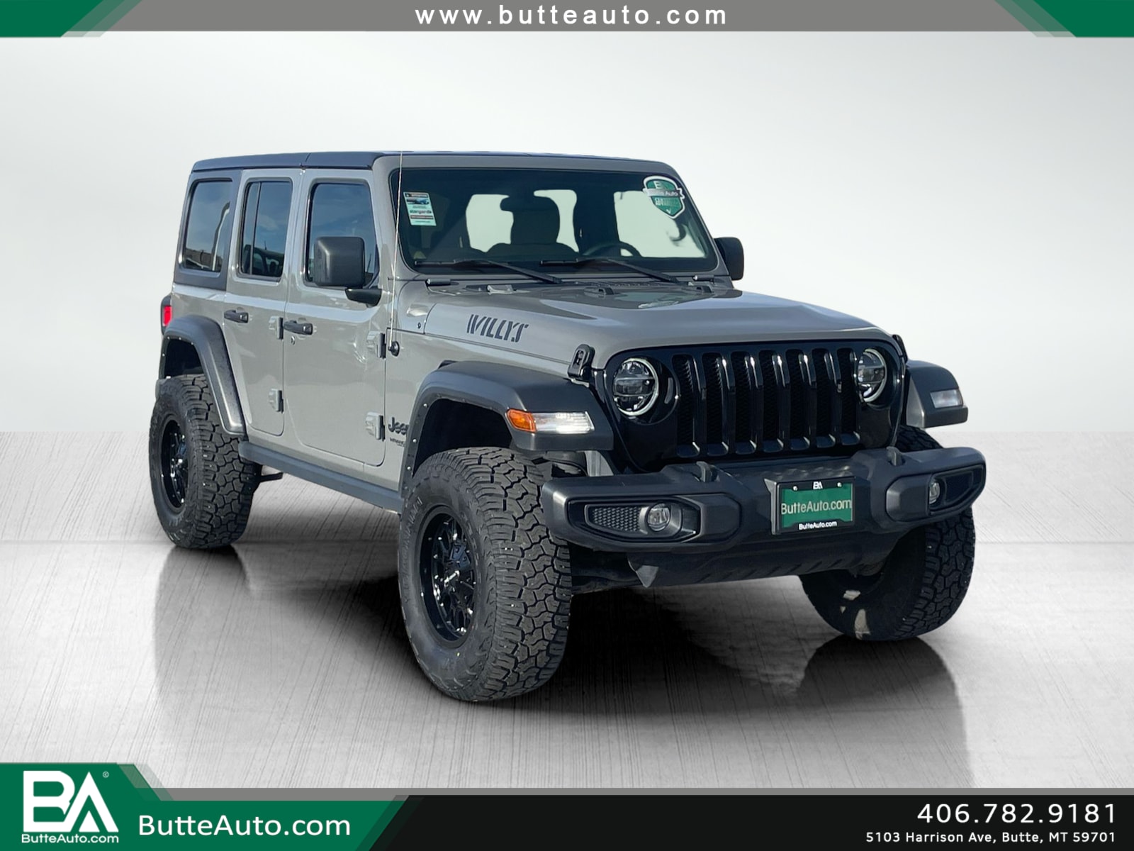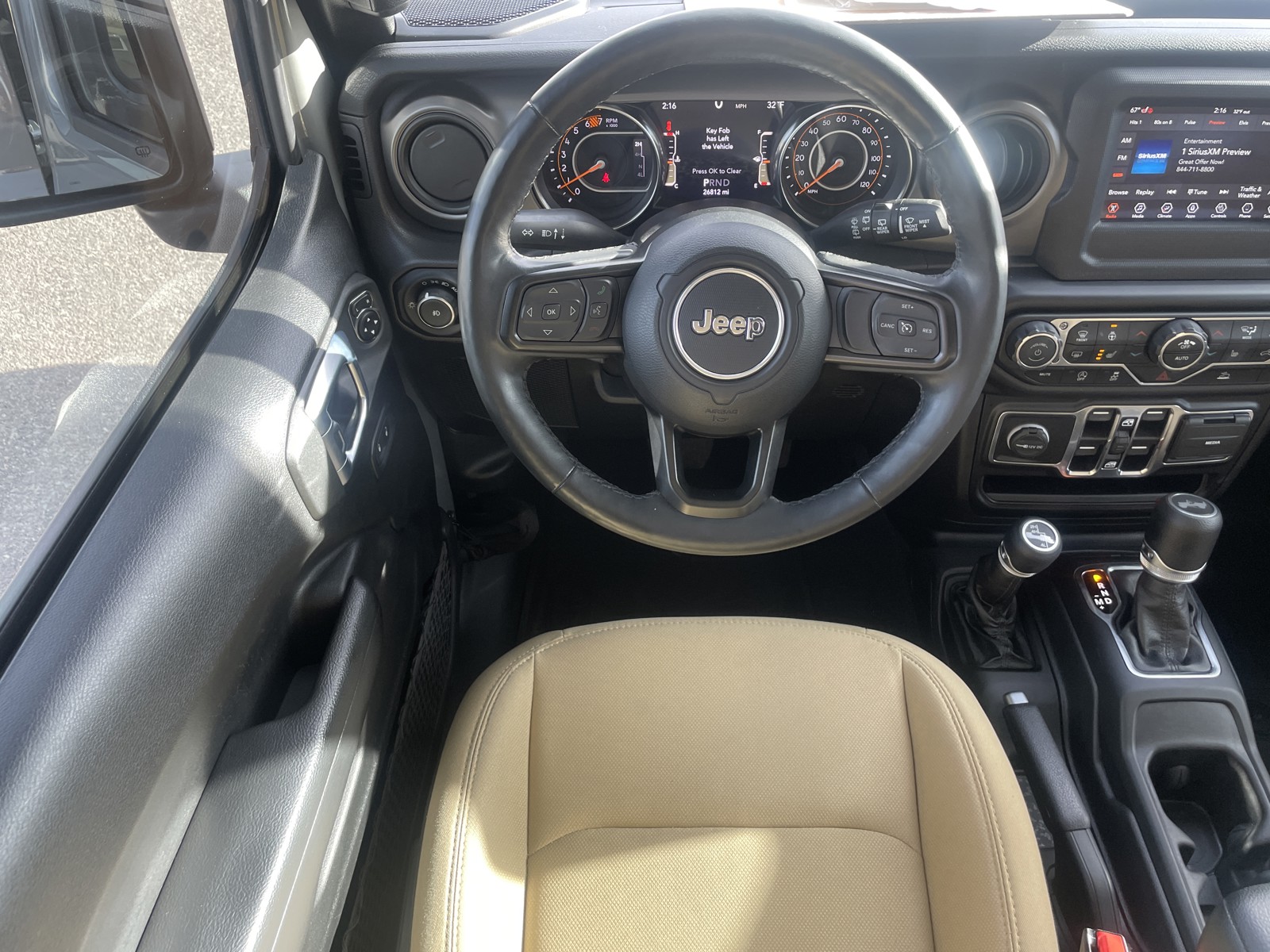 Cold Weather Group: Remote Start System; Heated Front Seats; Leather Wrapped Steering Wheel; Heated Steering Wheel. Convenience Group: Remote Start System; Universal Garage Door Opener. Technology Group: 2-Door Passive Entry. Front Door Locks; Cluster 7.0" TFT Color Display; SiriusXM Satellite Radio; Air Conditioning with Auto Temp Control; Air Filtering. Quick Order Package 22W Willys: Willys; Mold in Color Bumper with Gloss Black; Speed Sensitive Power Locks; Automatic Headlamps; Leather Wrapped Steering Wheel; Deep Tint Sunscreen Windows; Black Trail Rated Badge; 4-Wheel Drive Swing Gate Decal; Black Grille; MOPAR All-Weather Floor Mats; Willys Hood Decal; Rock Protection Sill Rails; LT255/75R17C Tires; Front 1-Touch Down Power Windows; 97 MPH Vehicle Max Speed Calibration; Anti-Spin Differential Rear Axle; Power Heated Mirrors; Matte Black Jeep Badge; Security Alarm; 17" X 7.5" Moab Black Aluminum Wheels; Remote Keyless Entry; Sun Visors with Illuminated Vanity Mirrors. LED Headlamp and Fog Lamp Group: Front LED Fog Lamps; LED Premium Reflector Headlamps. Quick Order Package 23W Willys: Willys; Mold in Color Bumper with Gloss Black; Speed Sensitive Power Locks; Automatic Headlamps; Leather Wrapped Steering Wheel; Deep Tint Sunscreen Windows; Black Trail Rated Badge; 4-Wheel Drive Swing Gate Decal; Black Grille; MOPAR All-Weather Floor Mats; Willys Hood Decal; Rock Protection Sill Rails; LT255/75R17C Tires; Front 1-Touch Down Power Windows; 97 MPH Vehicle Max Speed Calibration; Anti-Spin Differential Rear Axle; Power Heated Mirrors; Matte Black Jeep Badge; Security Alarm; 17" X 7.5" Moab Black Aluminum Wheels; Remote Keyless Entry; Sun Visors with Illuminated Vanity Mirrors. Black 3-Piece Hard Top. 2-Door Passive Entry. Front Door Locks. Sting-Gray Clearcoat. Sting-Gray Clearcoat. SiriusXM Satellite Radio. **Equipment listed is based on original vehicle build and subject to change. Please confirm the accuracy of the included equipment by calling the dealer prior to purchase.**