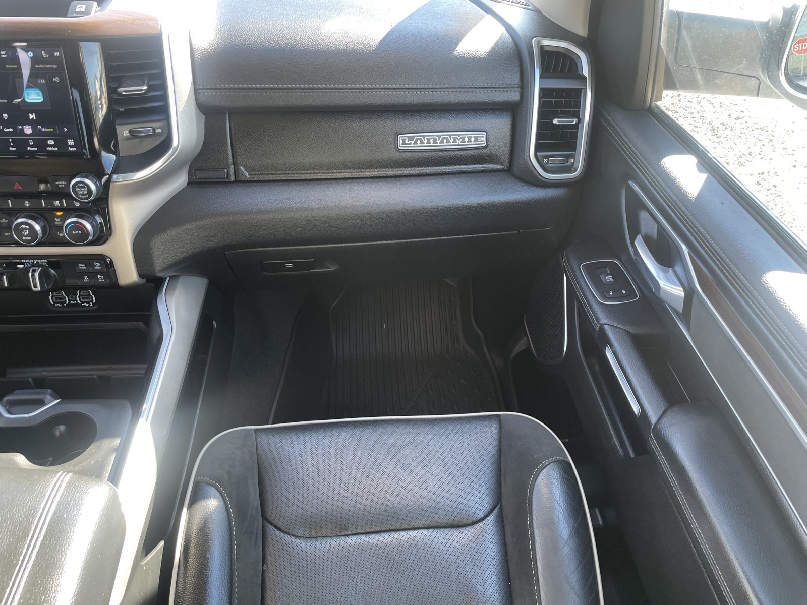 Cold Weather Group: Engine Block Heater; MOPAR Winter Front Grille Cover. Chrome Appearance Group: Chrome Tow Hooks; Bright Day Light Opening Moldings; Wheel to Wheel Side Steps. Quick Order Package 28H Laramie. Laramie Level A Equipment Group: Remote Tailgate Release; Auto High Beam Headlamp Control; Rain Sensitive Windshield Wipers; ParkSense Front/rear Park Assist with Stop; Foam Bottle Insert (door Trim Panel); Rear 60/40 Folding Split Recline Seat. Front Lighting Value Package: Halogen Quad Headlamps; Front Fog Lamps. Trailer Tow Group (b): Trailer Light Check; Trailer Brake Control; Trailer Reverse Steering Control. 20" X 9" Premium Paint/polished Wheels. Leather Trimmed Bucket Seats. Wheel to Wheel Side Steps. Uconnect 5 Navigation Radio with 8.4" Display. Anti-Spin Differential Rear Axle. ParkSense Front/rear Park Assist with Stop. Chrome Power-Fold Trailer Tow Mirrors. Trailer Brake Control. Rear Wheelhouse Liners. MOPAR Front and Rear Rubber Floor Mats. **Equipment listed is based on original vehicle build and subject to change. Please confirm the accuracy of the included equipment by calling the dealer prior to purchase.**