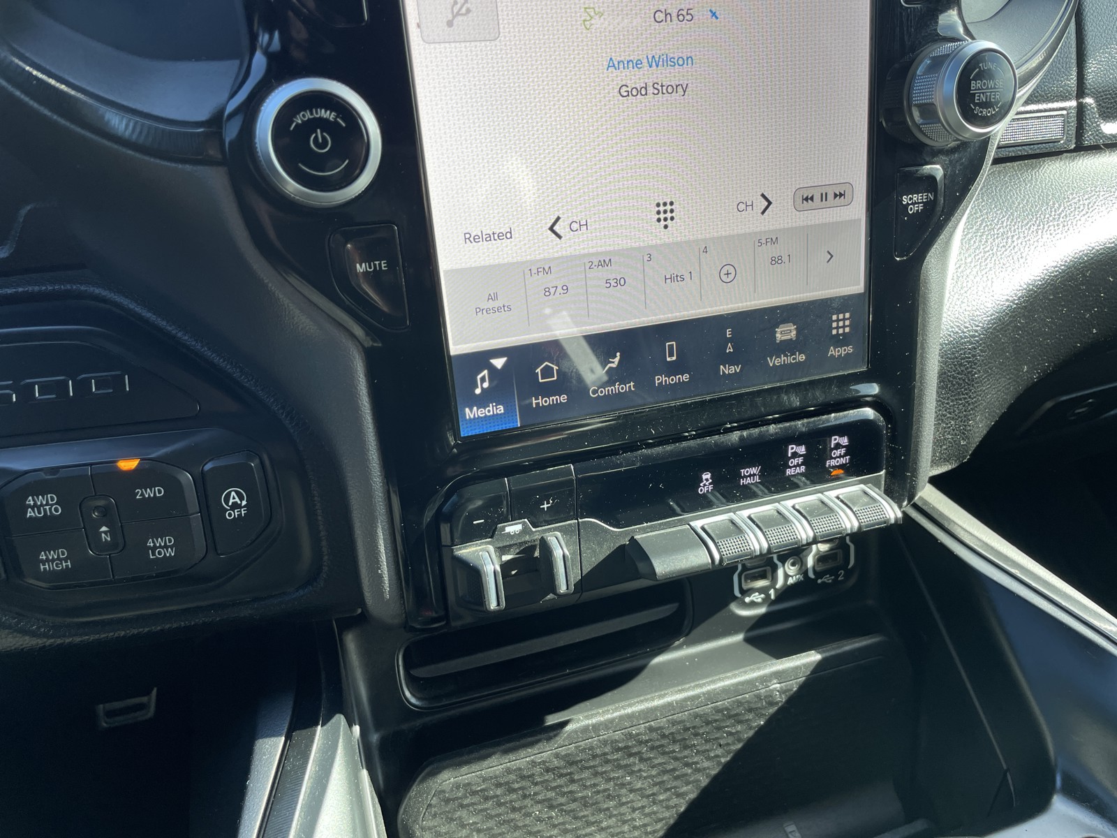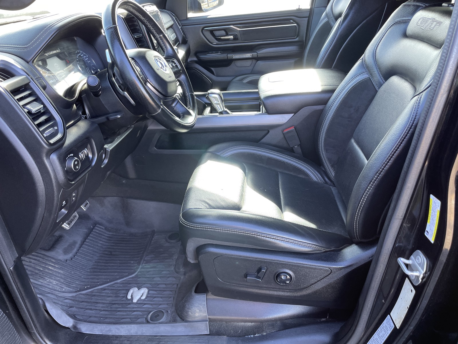 G/T Package: Premium Overhead Console; Under Seat Lighting; Leather-Faced/vinyl Bucket Seats; Leather Wrapped Shift Knob; Leather-Wrapped Steering Wheel; Power Adjustable Pedals with Memory; Steering Wheel Mounted Shift Control; MOPAR Bright Pedal Kit; MOPAR Cold Air Intake System; Passive Cold End Exhaust; Overhead LED Lamps; Floor Console; G/T Decal; LED Dome Lamp with On/off Switch; Exterior Mirrors with Memory Settings; Front Door Accent Lighting; GT Interior Theme; Radio/driver Seat/mirrors/pedals Memory; Rear Door Accent Lighting; LED Footwell Lighting; Performance Pages. Quick Order Package 27W Rebel. Rebel Level 2 Equipment Group: Remote Start System; Rear Window Defroster; Rain-Sensing Windshield Wipers; Park-Sense Front/rear Park Assist with Stop; Power Adjustable Pedals; Rear Dome Lamp with On/off Switch; Body-Colour Door Handles; A/C with Dual-Zone Automatic Temperature Control; 115V Rear Auxiliary Power Outlet; Media Hub with 2 USB Charging Ports; Rear Underseat Compartment Storage; Remote Proximity Keyless Entry; Universal Garage Door Opener; Front Heated Seats; Heated Steering Wheel; Door Trim Panel Foam Bottle Insert; 2nd Row In-Floor Storage Bins; Security Alarm; Sun Visors with Illuminated Vanity Mirrors. 124.9-Litre (27.4-Gallon) Fuel Tank. Diamond Black Crystal PC. Trailer Brake Control. **Equipment listed is based on original vehicle build and subject to change. Please confirm the accuracy of the included equipment by calling the dealer prior to purchase.**