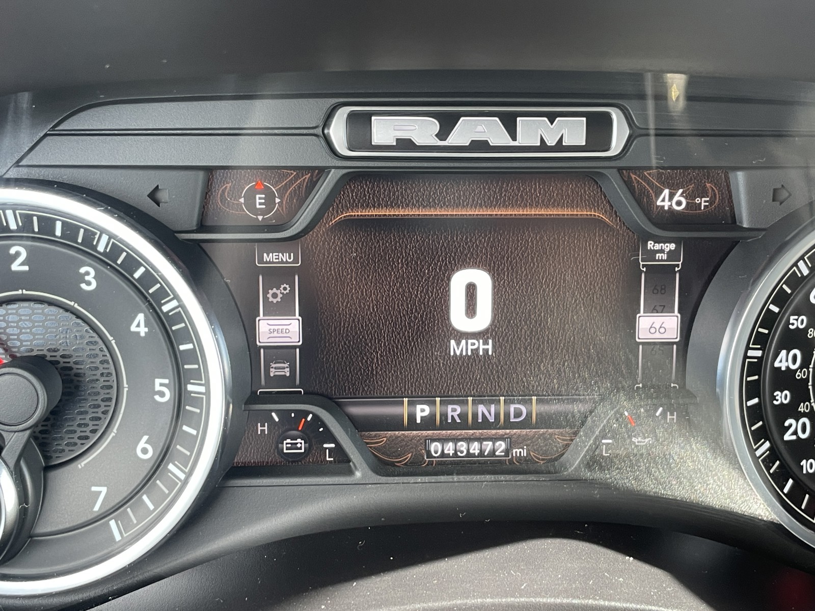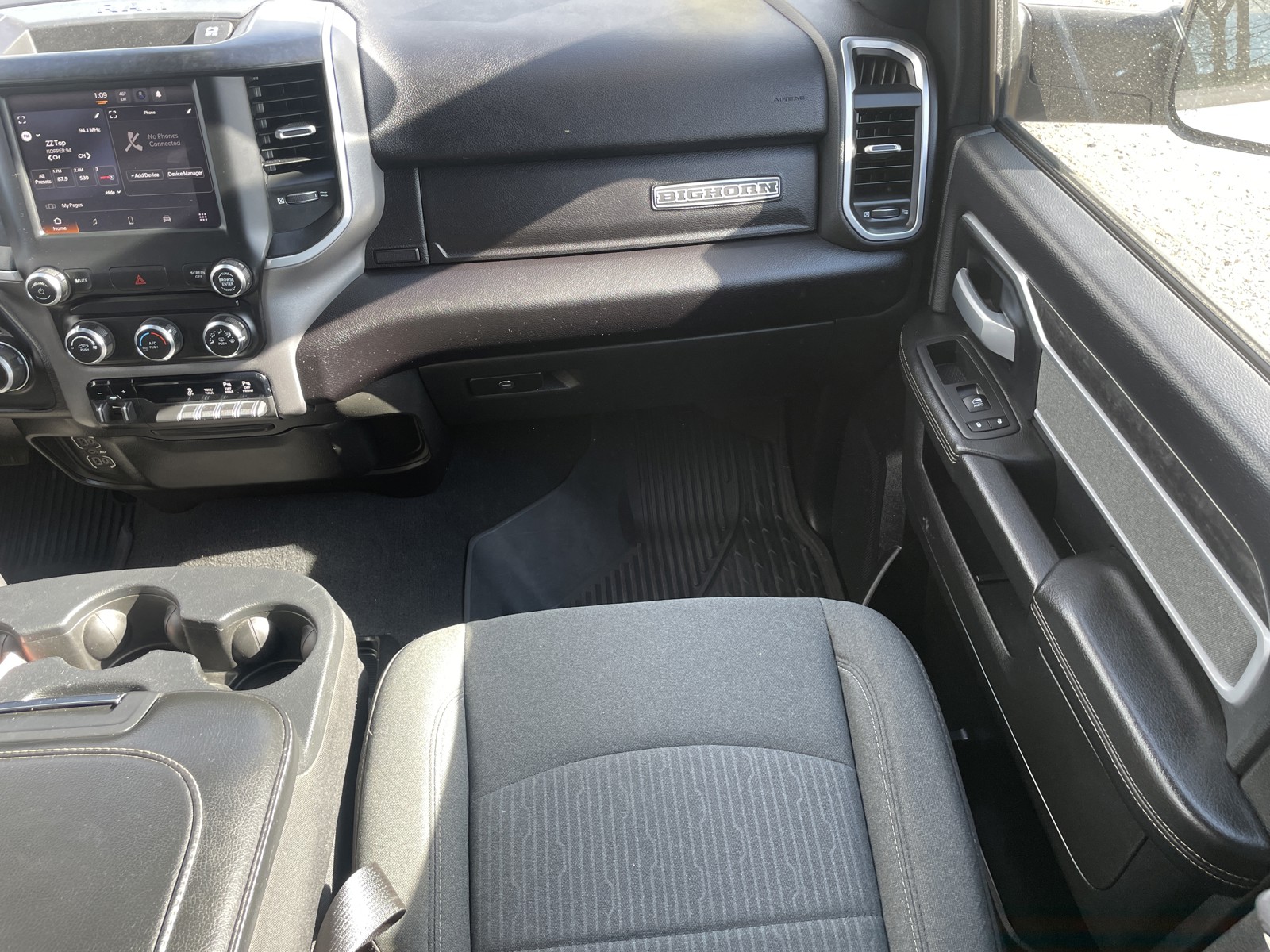 Quick Order Package 2GZ Big Horn. Sport Appearance Package: Body Color Grille Surround; Black Interior Accents; Sport Decal; Body Color Door Handles; Painted Front Bumper; Painted Rear Bumper; ParkSense Front/rear Park Assist System. Bed Utility Group: MOPAR Spray in Bedliner; MOPAR Deployable Bed Step; LED Bed Lighting. Level a Equipment Group: Locking Lower Glove Box; Rear View Auto Dim Mirror; Power Adjustable Pedals; Leather Wrapped Steering Wheel; Rear Dome with On/off Switch Lamp; Front Fog Lamps; Steering Wheel Mounted Audio Controls; Premium Cloth 40/20/40 Bench Seat; Dual Glove Boxes; Glove Box Lamp; Footwell Courtesy Lamp; Universal Garage Door Opener; Foam Bottle Insert (door Trim Panel); 18" X 8.0" Polished Aluminum Wheels; 2nd Row in Floor Storage Bins; Sun Visors with Illuminated Vanity Mirrors; Big Horn Instrument Panel Badge. Protection Group: Tow Hooks; Transfer Case Skid Plate Shield. MOPAR Spray in Bedliner. 18" X 8.0" Polished Aluminum Wheels. Anti-Spin Differential Rear Axle. ParkSense Front/rear Park Assist System. Billet Silver Metallic CC. Front Fog Lamps. Rear Wheelhouse Liners. LED Bed Lighting. MOPAR Front and Rear Rubber Floor Mats. Tow Hooks. Cluster 7.0" TFT Color Display. **Equipment listed is based on original vehicle build and subject to change. Please confirm the accuracy of the included equipment by calling the dealer prior to purchase.**