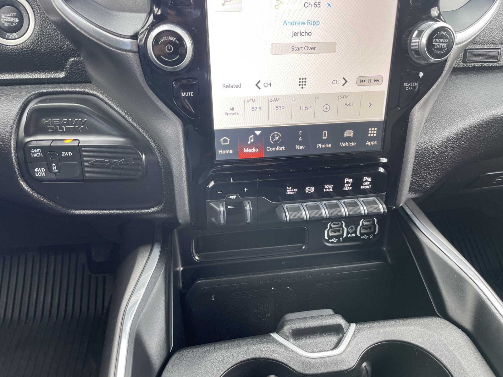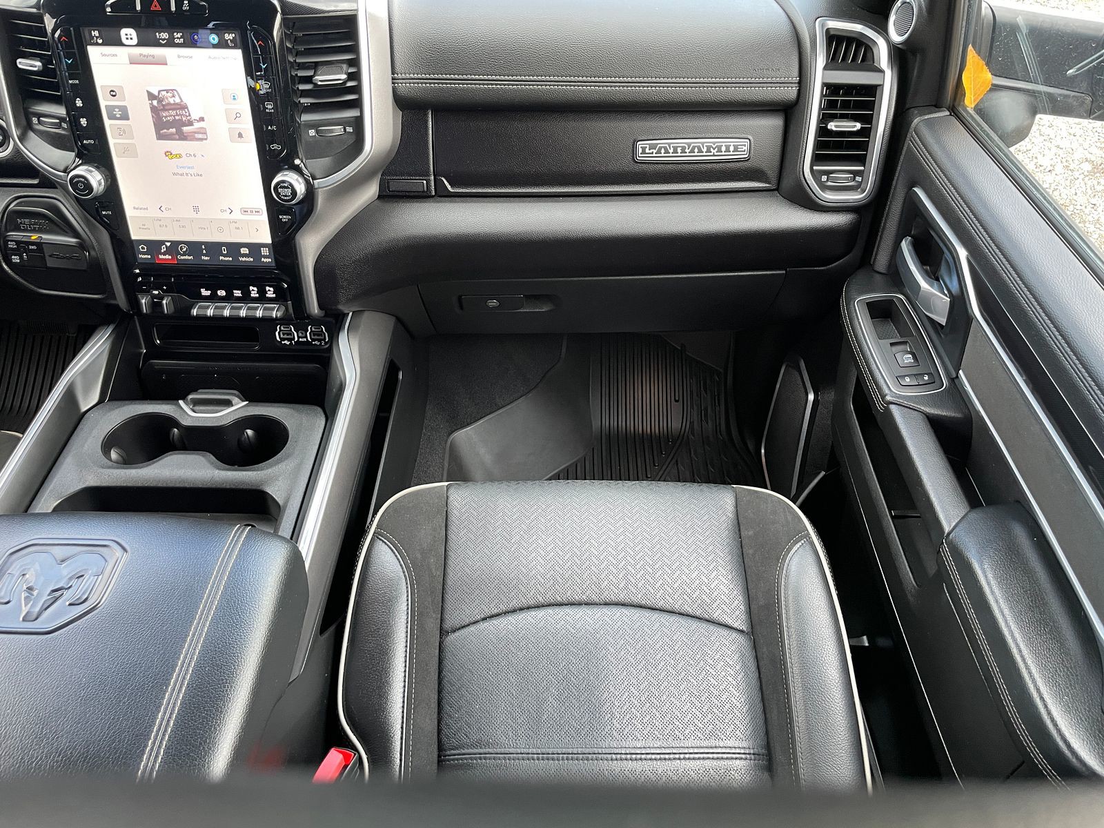 Cold Weather Group: Engine Block Heater; MOPAR Winter Front Grille Cover. Quick Order Package 2HH Laramie. Night Edition. Towing Technology Group B: Center Stop Lamp with Cargo View Camera; Mirror-Mounted Aux Reverse Lamps; Surround View Camera System; Exterior Mirrors with Supplemental Signals; Power Chrome Tow Mirrors with Convex Spotter and Memory; Exterior Mirrors Courtesy Lamps; Trailer Tow Mirrors; Exterior Mirrors with Heating Element; Chrome Exterior Mirrors; Exterior Mirrors with Memory; Mirror Running Lights; Power-Folding Mirrors; Trailer Reverse Guidance; Power Adjustable Convex Aux Mirrors. Laramie Level B Equipment Group: SiriusXM Satellite Radio; Mirror-Mounted Aux Reverse Lamps; Rain Sensitive Windshield Wipers; Power Adjustable Pedals with Memory; Power Chrome Tow Mirrors with Convex Spotter and Memory; Ventilated Front Seats; Remote Tailgate Release; 17 Speaker Harman Kardon Premium Sound; Auto High Beam Headlamp Control; Chrome Exterior Mirrors; Exterior Mirrors with Memory; Heated Second Row Seats; Foam Bottle Insert (door Trim Panel); 2nd Row in Floor Storage Bins; Radio/driver Seat/mirrors/pedals Memory; Power Adjustable Convex Aux Mirrors. Protection Group: Transfer Case Skid Plate Shield. Dual Rear Wheels: Clearance Lamps; 17" Steel Spare Wheel; Box and Rear Fender Clearance Lamps; Center Hub; 6000# Front Axle with Hub Extension; 14. 000 lbs GVWR. Uconnect 5 Navigation with 12.0" Display Radio. Auto Level Rear Air Suspension. Power Sunroof. MOPAR 20K Direct Mount 5th Wheel Hitch. MOPAR Spray in Bedliner. Leather Trimmed Bucket Seats. 5th Wheel/gooseneck Towing Prep Group. Center Stop Lamp with Cargo View Camera. 50 Gallon Fuel Tank. LT235/80R17E OWL On/off Road Tires. Diamond Black Crystal PC. Diamond Black Crystal PC. MOPAR Front and Rear Rubber Floor Mats. Clearance Lamps. **Equipment listed is based on original vehicle build and subject to change. Please confirm the accuracy of the included equipment by calling the dealer prior to purchase.**