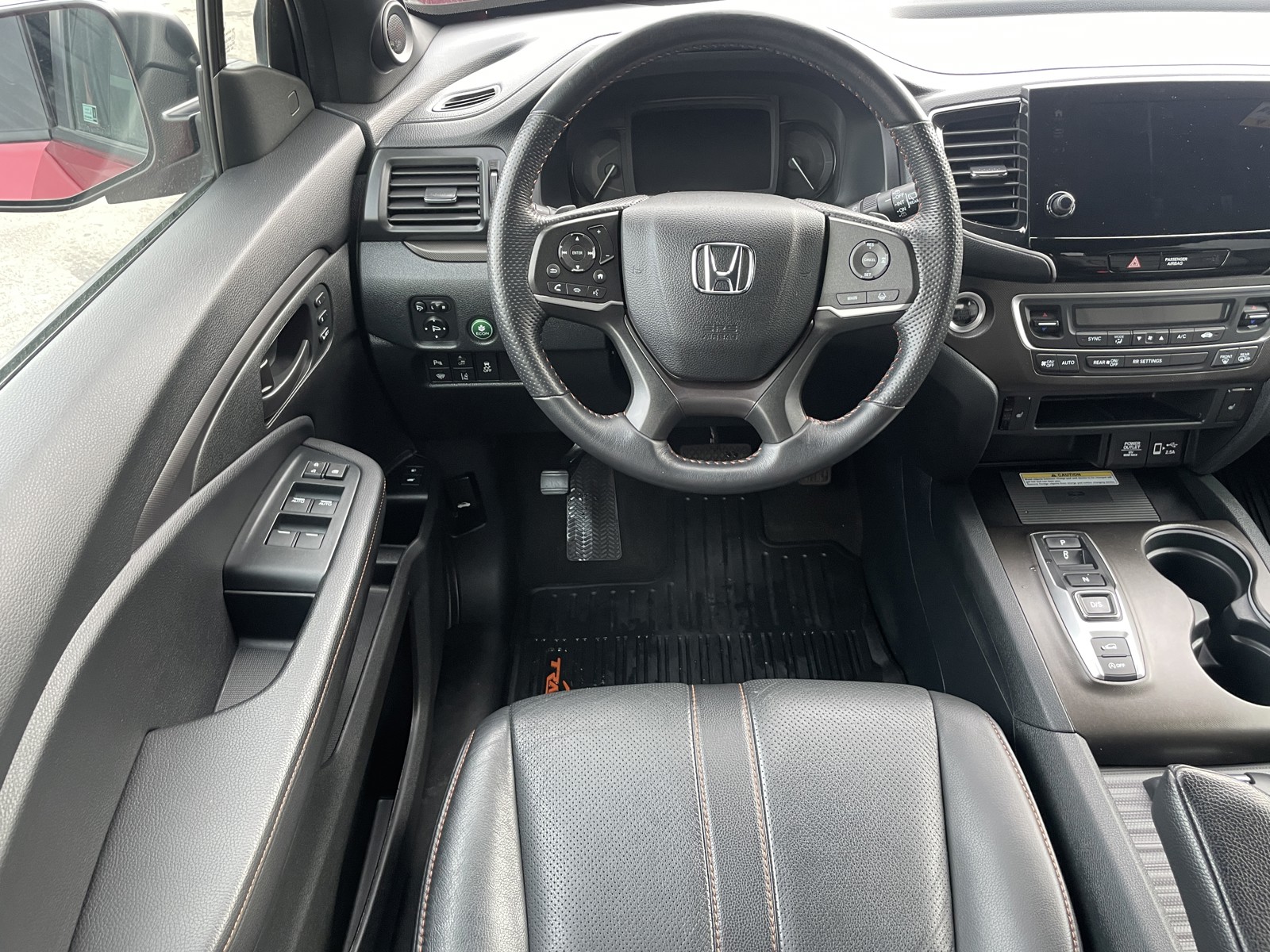 - Leather front seat upholstery