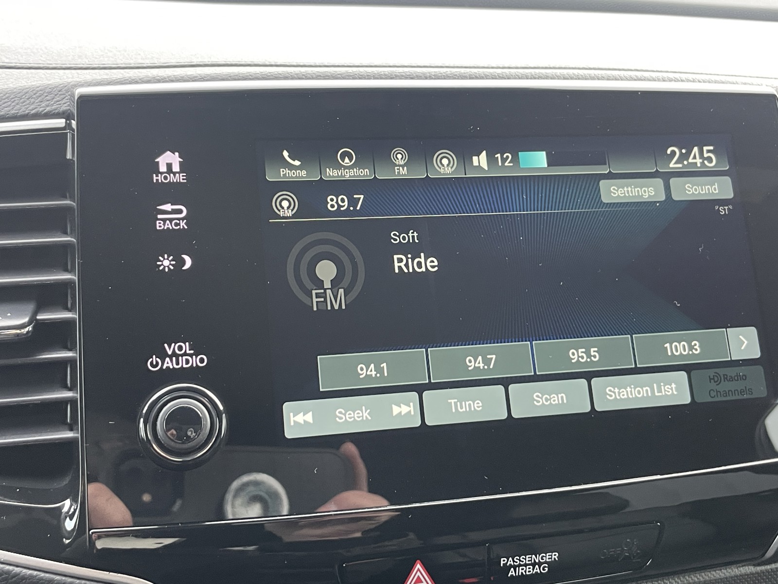 - SmartVent seat mounted side impact front passenger airbag