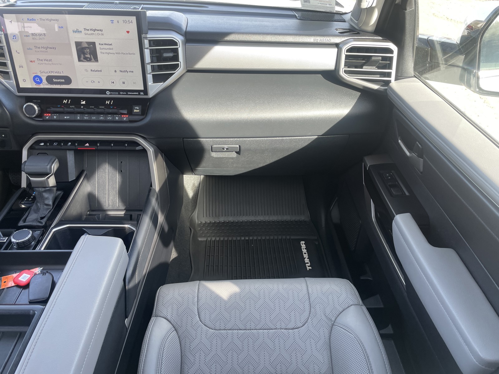 This 1/2 ton pickup warns of approaching vehicles with Cross-Traffic Alert. The vehicle's blind spot monitor enhances safety. The vehicle offers Android Auto for seamless smartphone integration. This model features a hands-free Bluetooth phone system. This Toyota Tundra Hybrid offers Apple CarPlay for seamless connectivity. The leather seats in this unit are a must for buyers looking for comfort, durability, and style. Protect this unit from unwanted accidents with a cutting edge backup camera system. The installed navigation system will keep you on the right path. This model has only one previous owner, verified by AutoCheck. Start this model from inside with remote start. The Toyota Tundra Hybrid has a clean AutoCheck report, ensuring its impeccable vehicle history. Keep your hands warm all winter with a heated steering wheel in this Toyota Tundra Hybrid . This 2023 Toyota Tundra Hybrid embodies class and sophistication with its refined white exterior. The Toyota Tundra Hybrid has a V6, 3.5L high output engine.